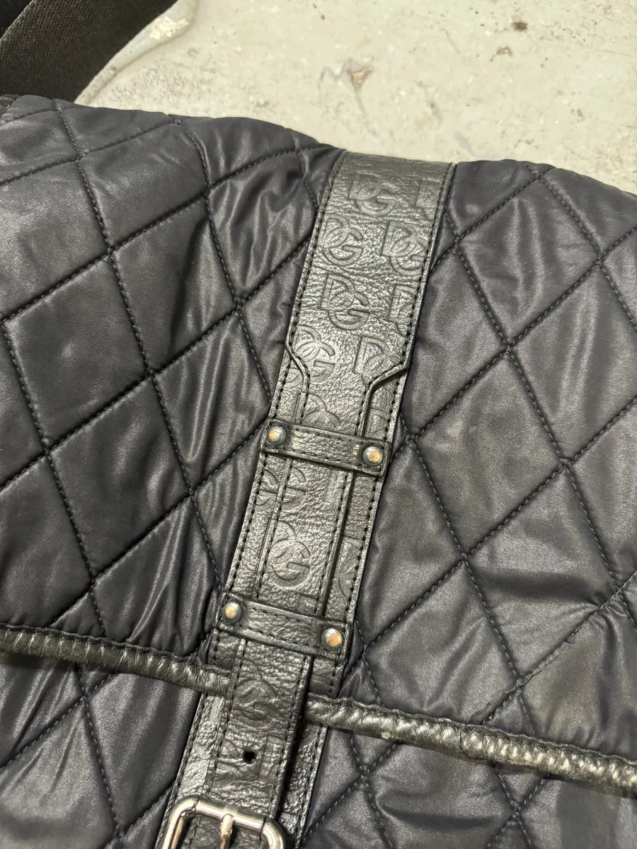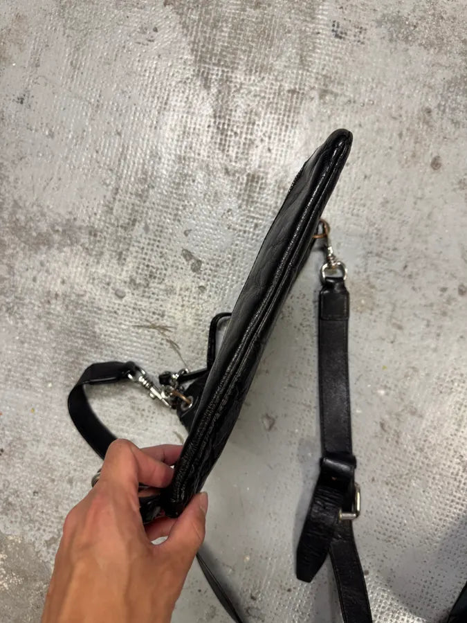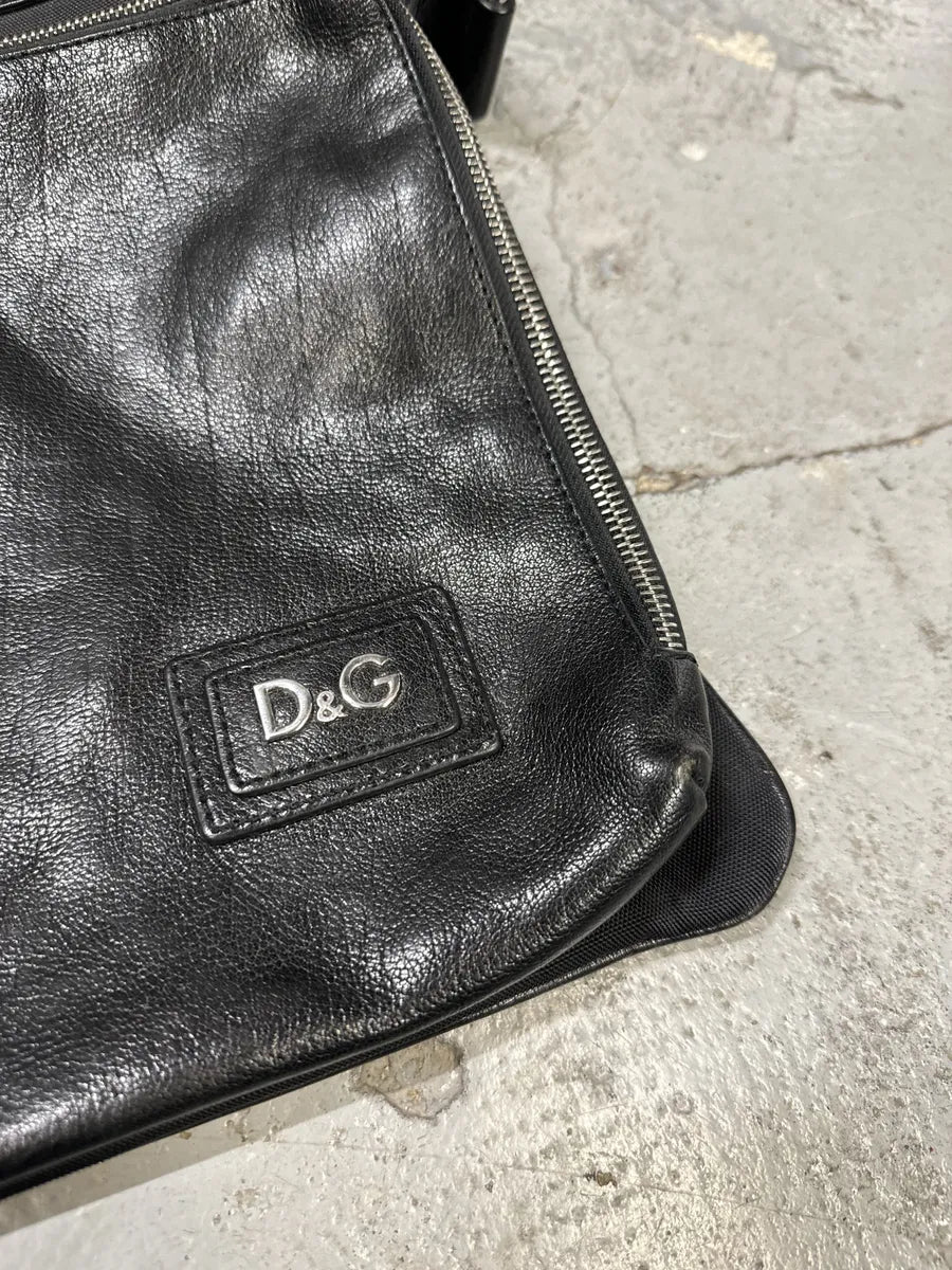 2000s Dolce & Gabbana Black Leather Zip Cargo Shoulder Bag -