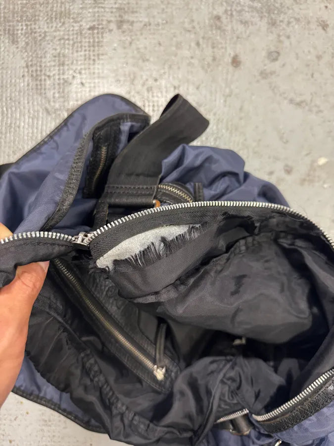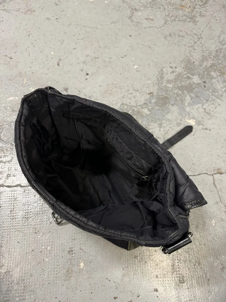 2000s Prada Hybrid Black Leather & Nylon Messenger Shoulder Bag -