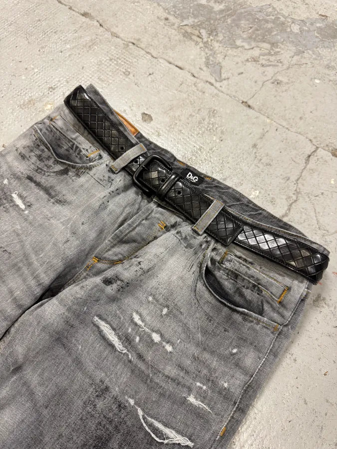 2000s Dolce & Gabbana Studded Black Leather Belt -