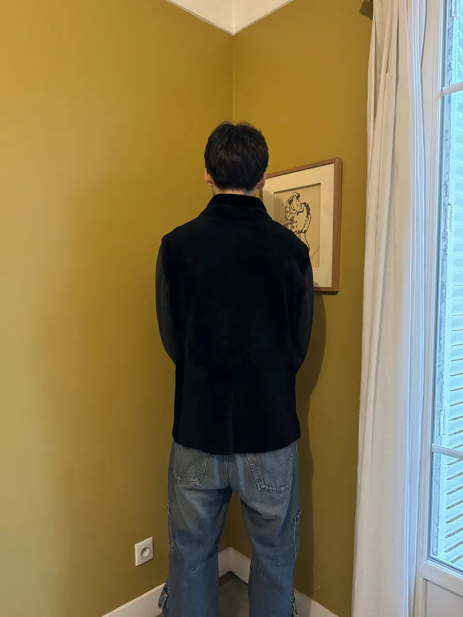 • Dries Van Noten Contemporary Plissed Black Blazer Jacket