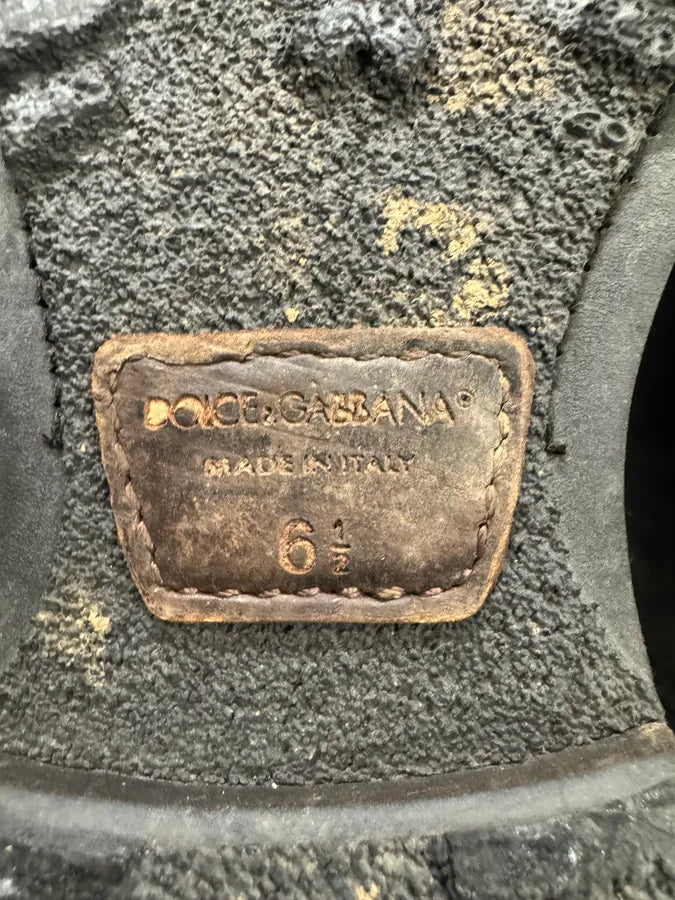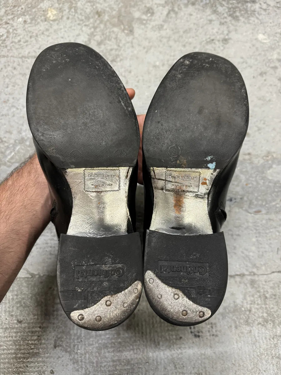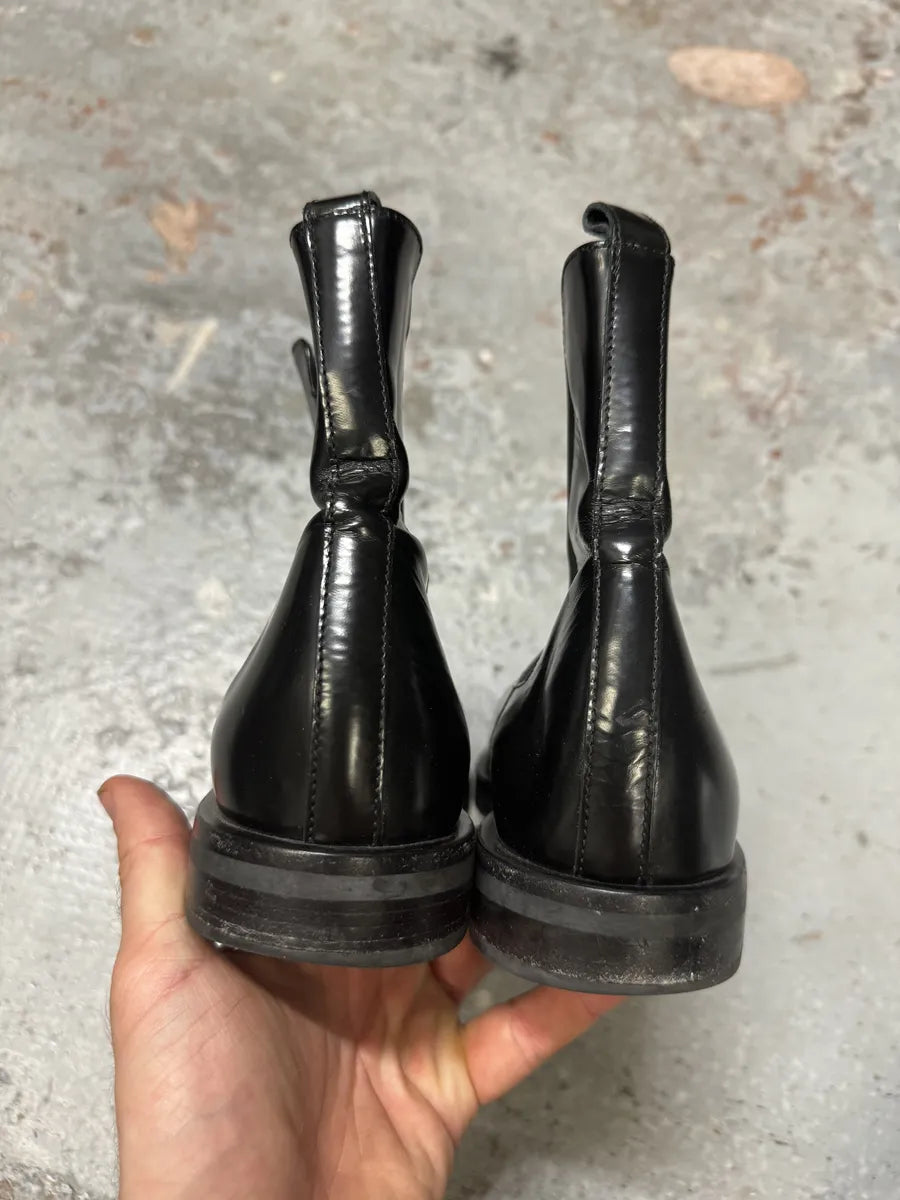 2000s Dolce & Gabbana Army Lace-Up Black Leather Boots -