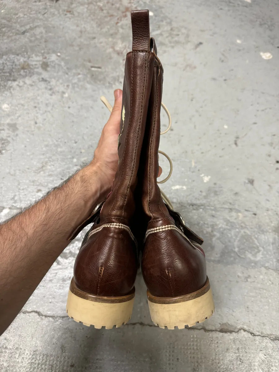 2000s Moncler Utility Puffer Brown Leather Boots -