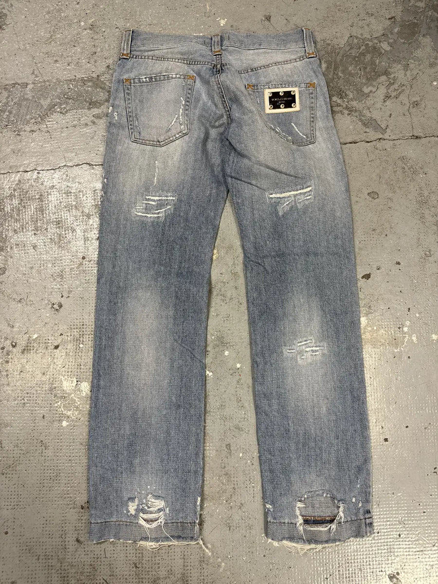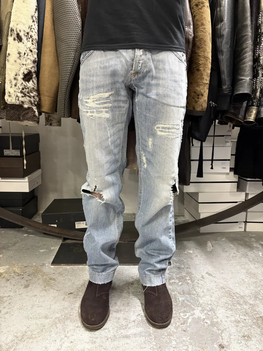 AW2006 Dolce & Gabbana Blue Destroyed Faded Denim Jeans -