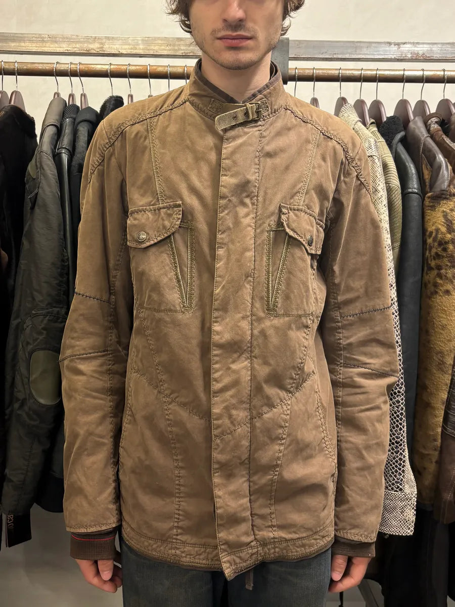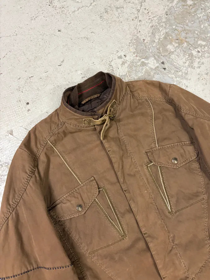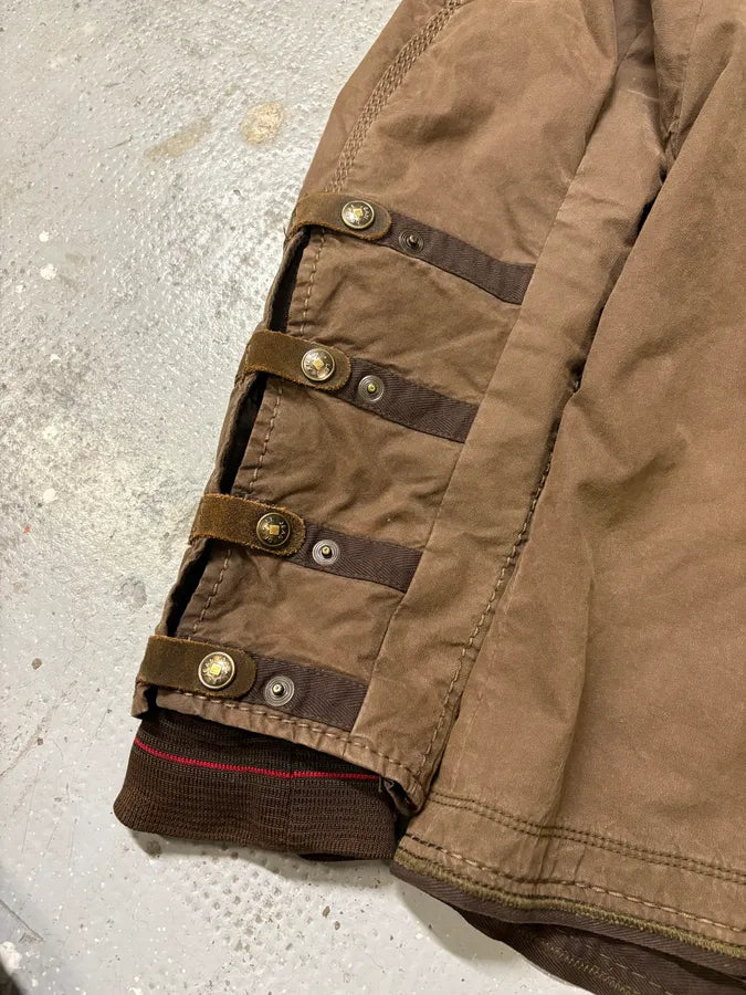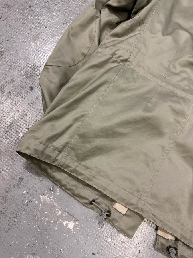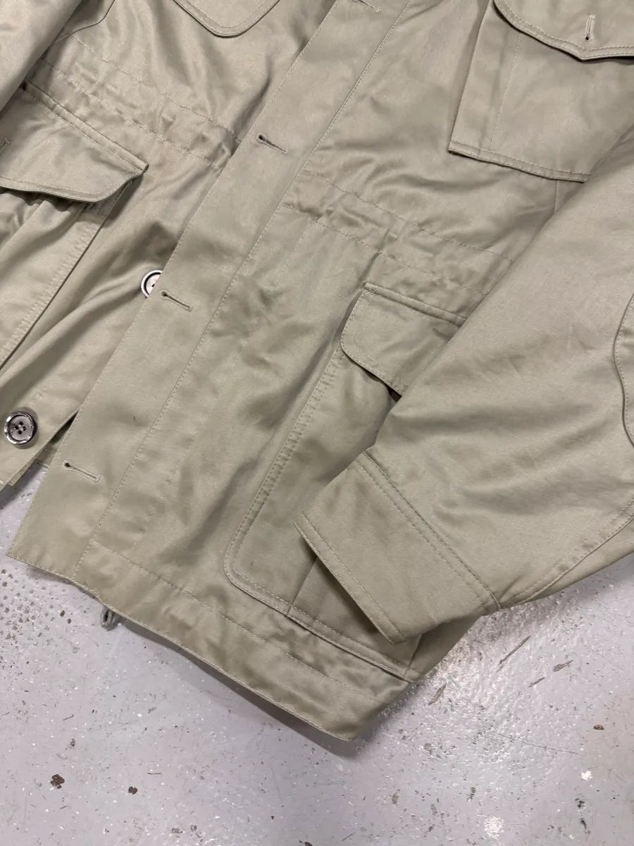 2000s Givenchy Destroyed Fur Hood Beige Cargo Jacket -