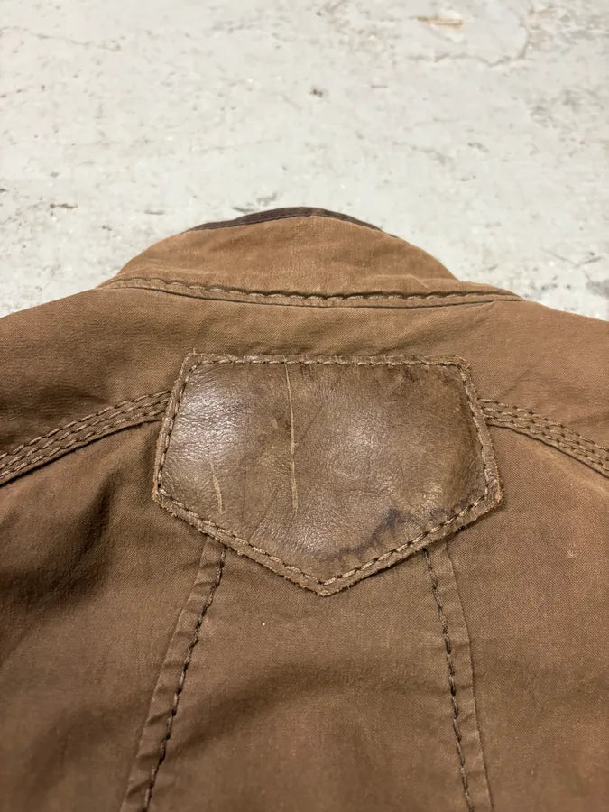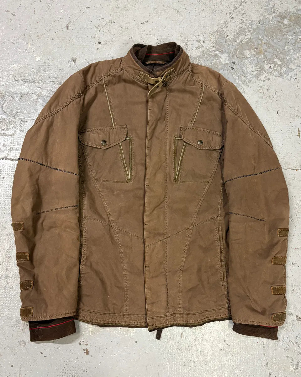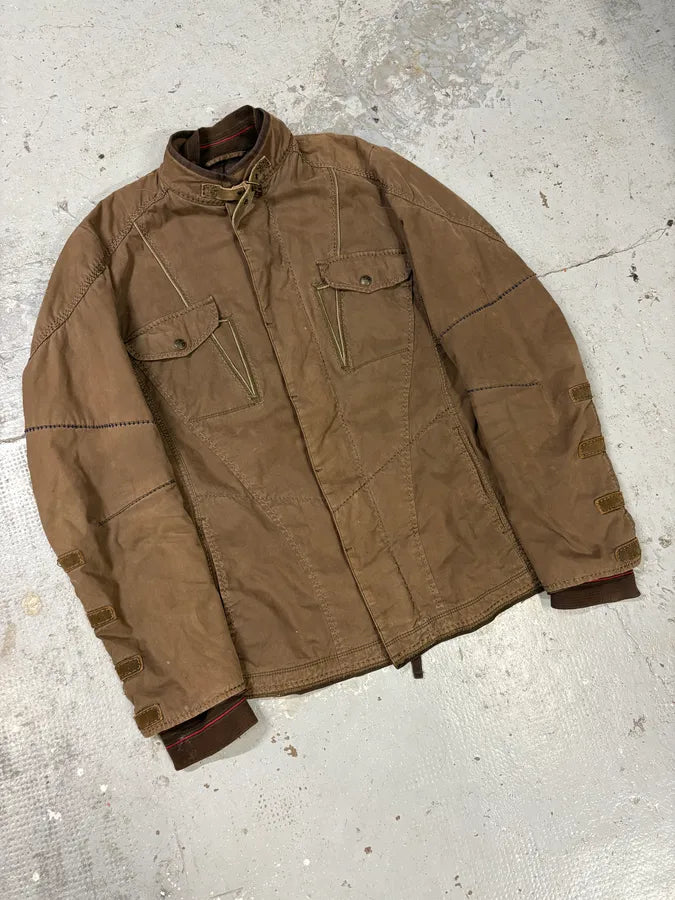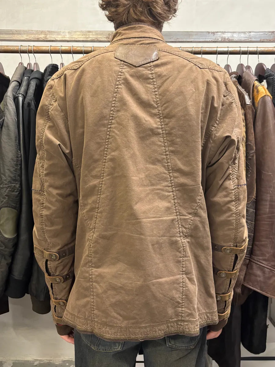 2000s Givenchy Destroyed Fur Hood Beige Cargo Jacket -