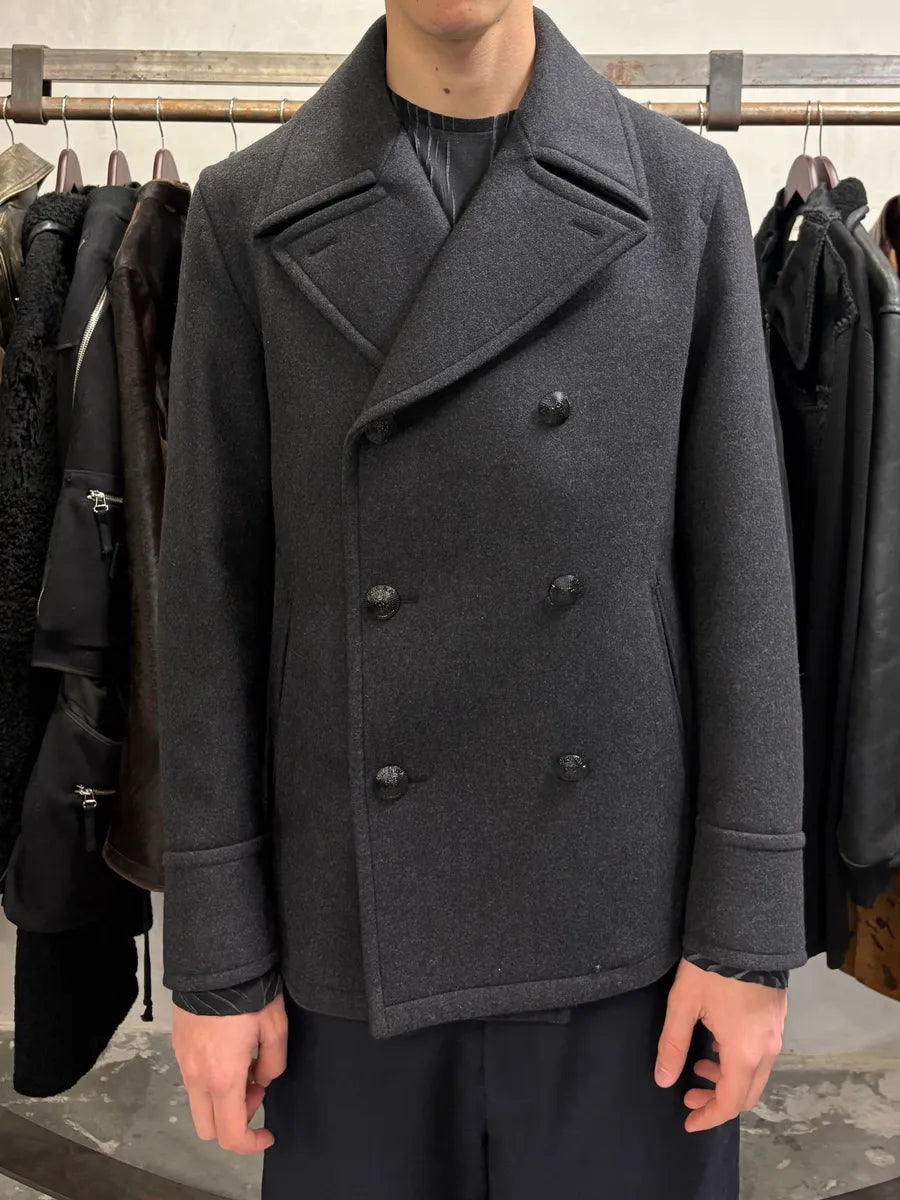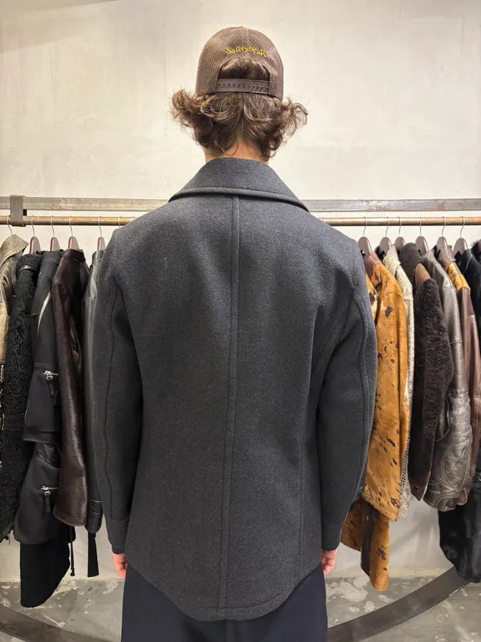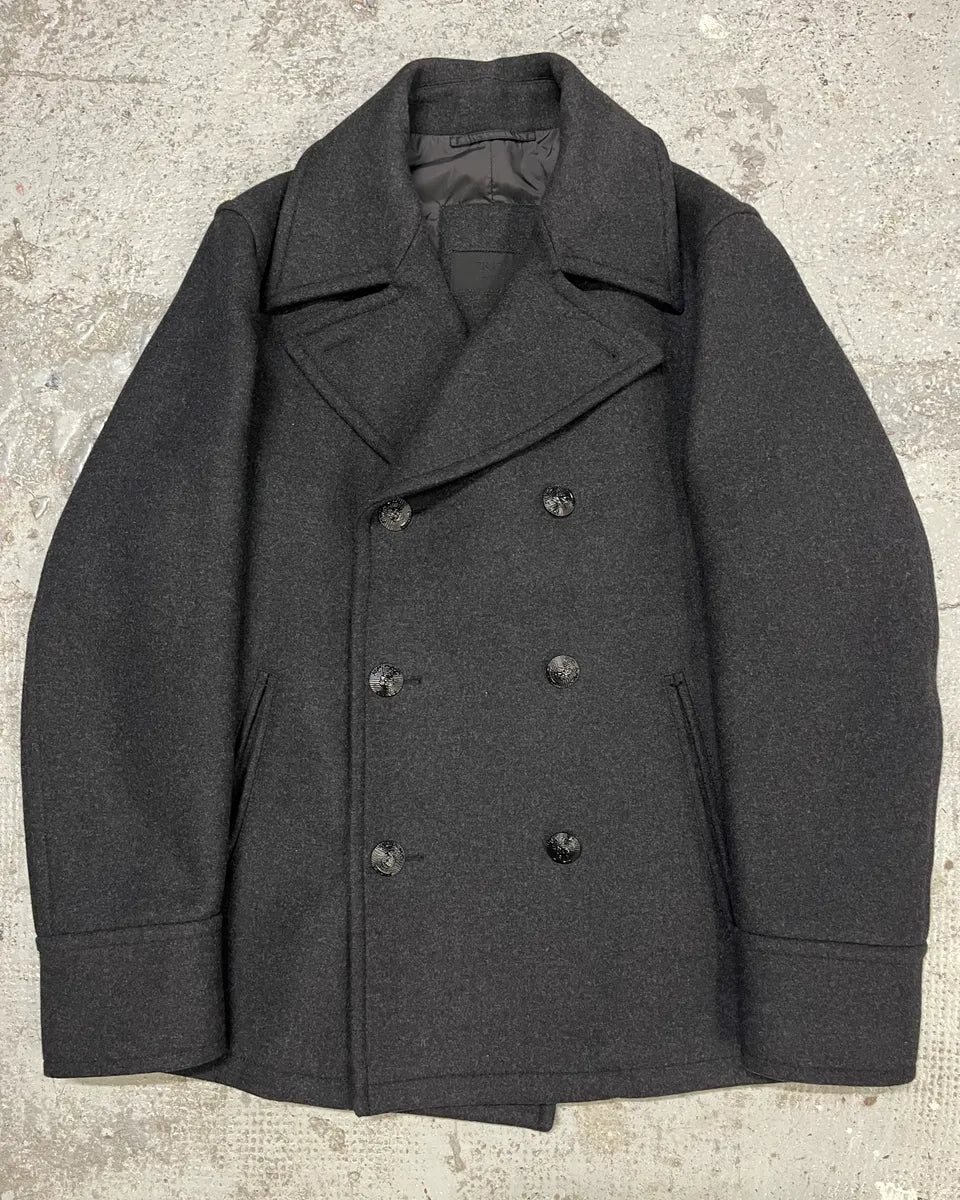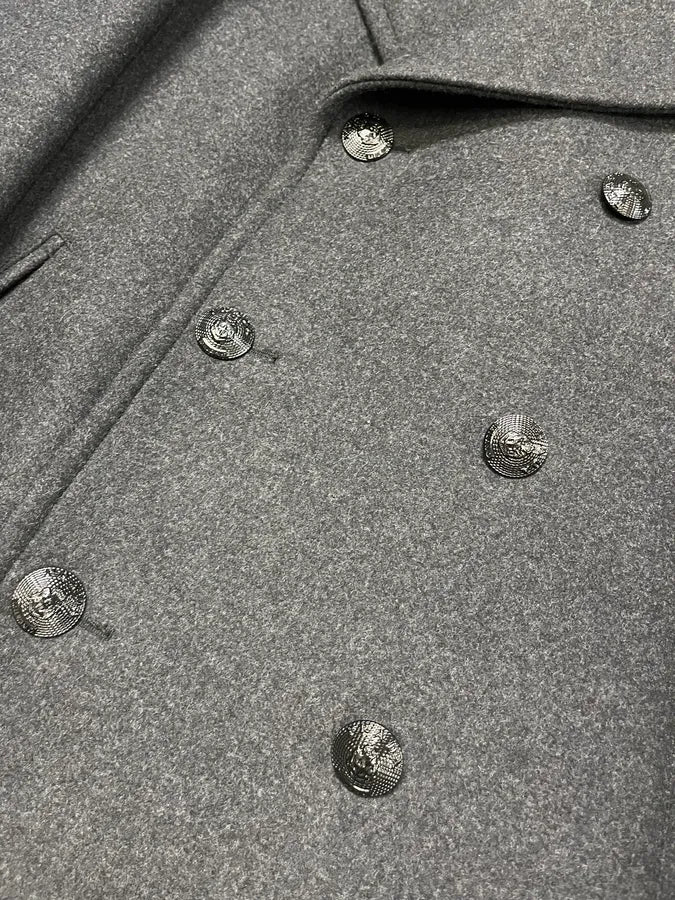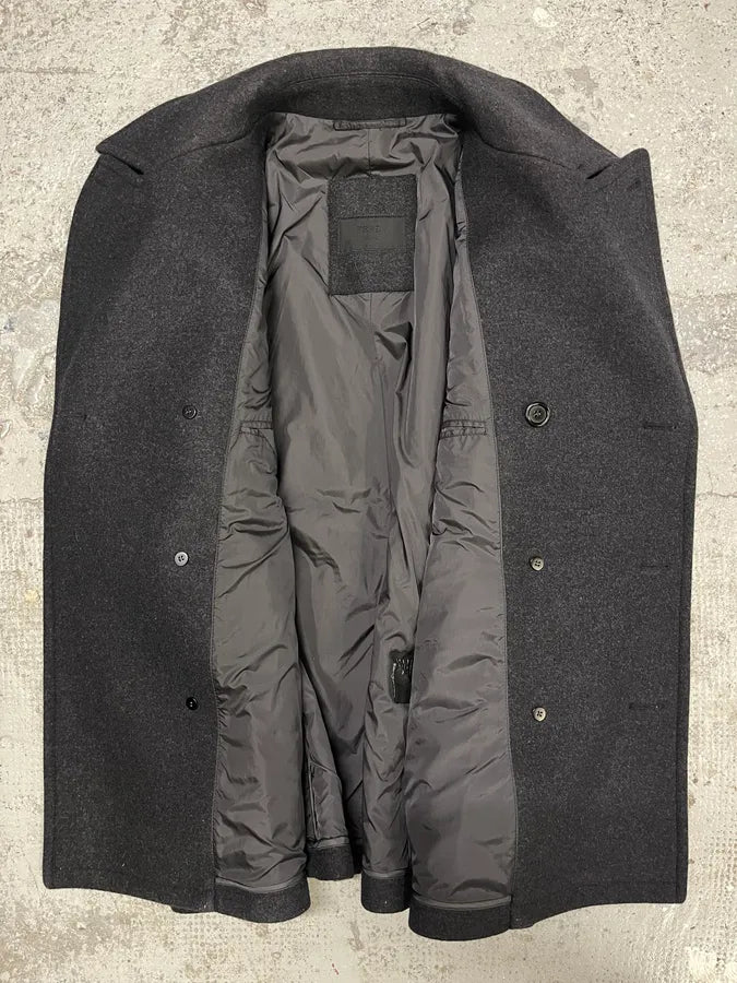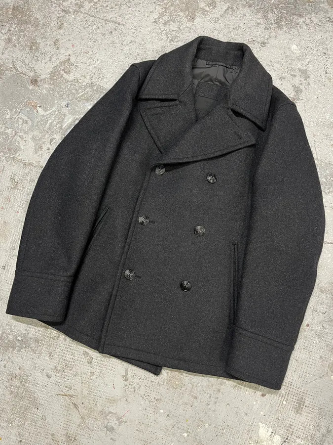 2000s Dries Van Noten Grey Officer Wool Pea Coat -