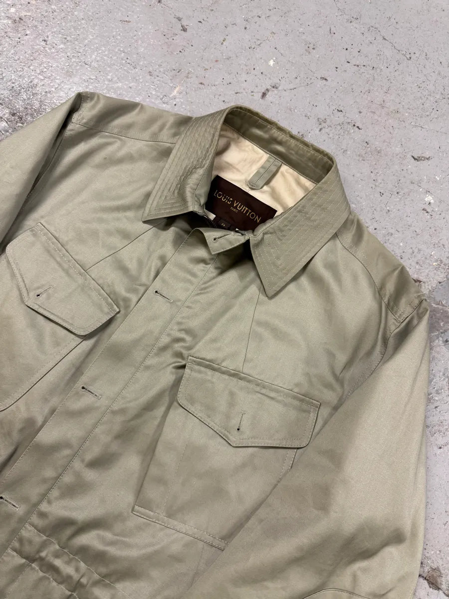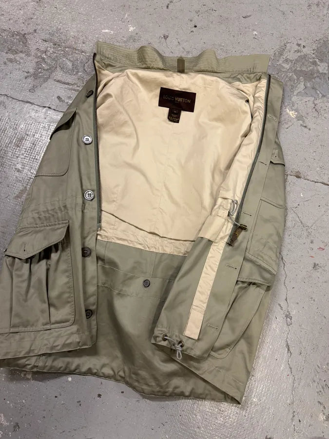 2000s Louis Vuitton Khaki Green Trench Monogrammed HoodedJacket -