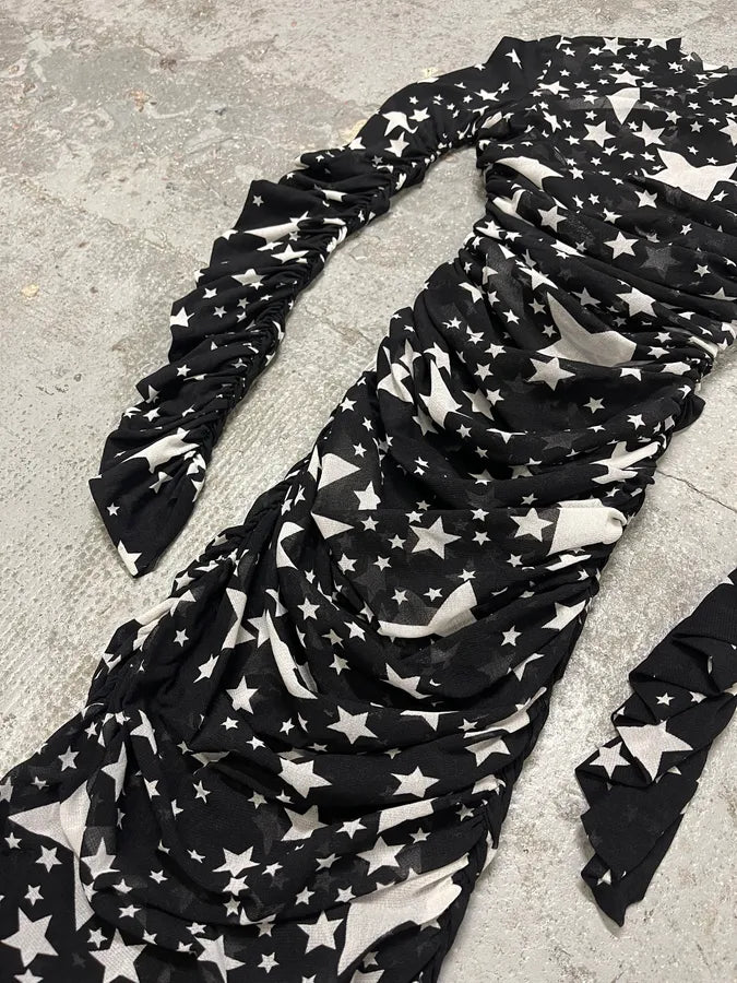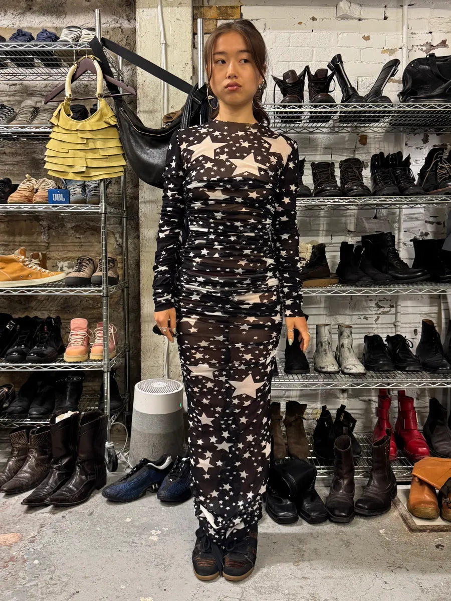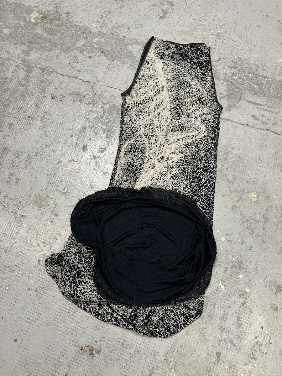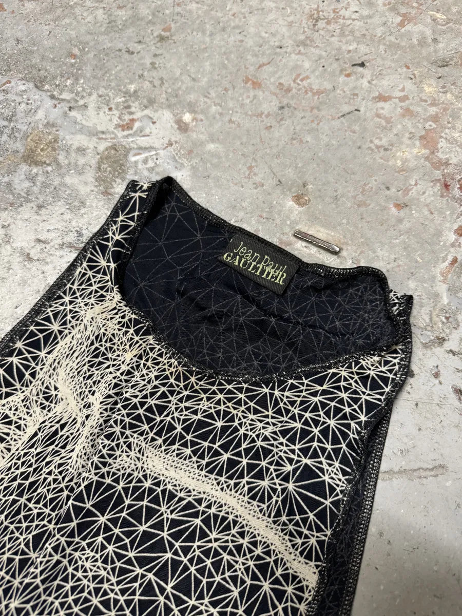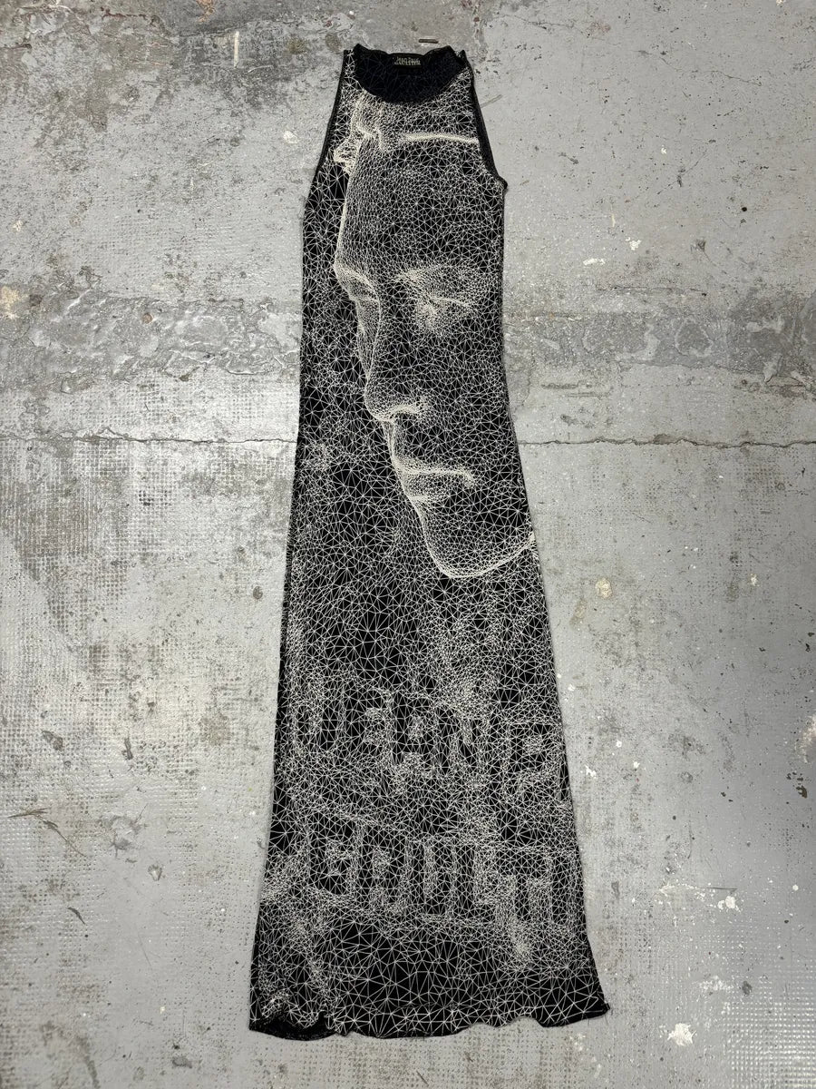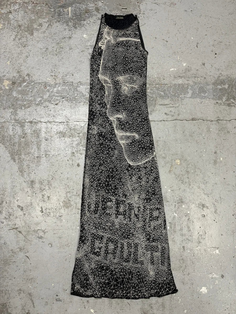 SS2001 Jean Paul Gaultier Satanic Gargoyle Blue Mesh Dress & Sarong -