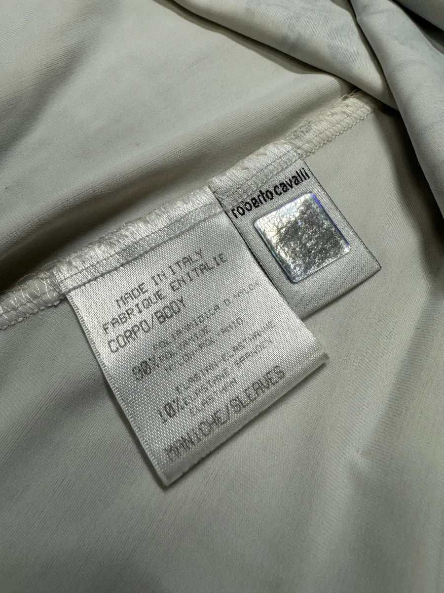 2000s Cavalli White Leopard Print Long Silk Dress -