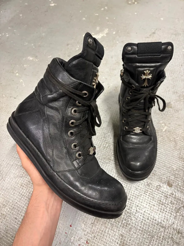 Louis Vuitton Black Leather Damier Clash Combat Boots -