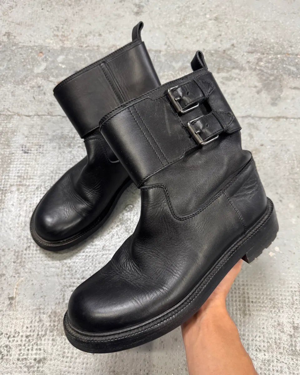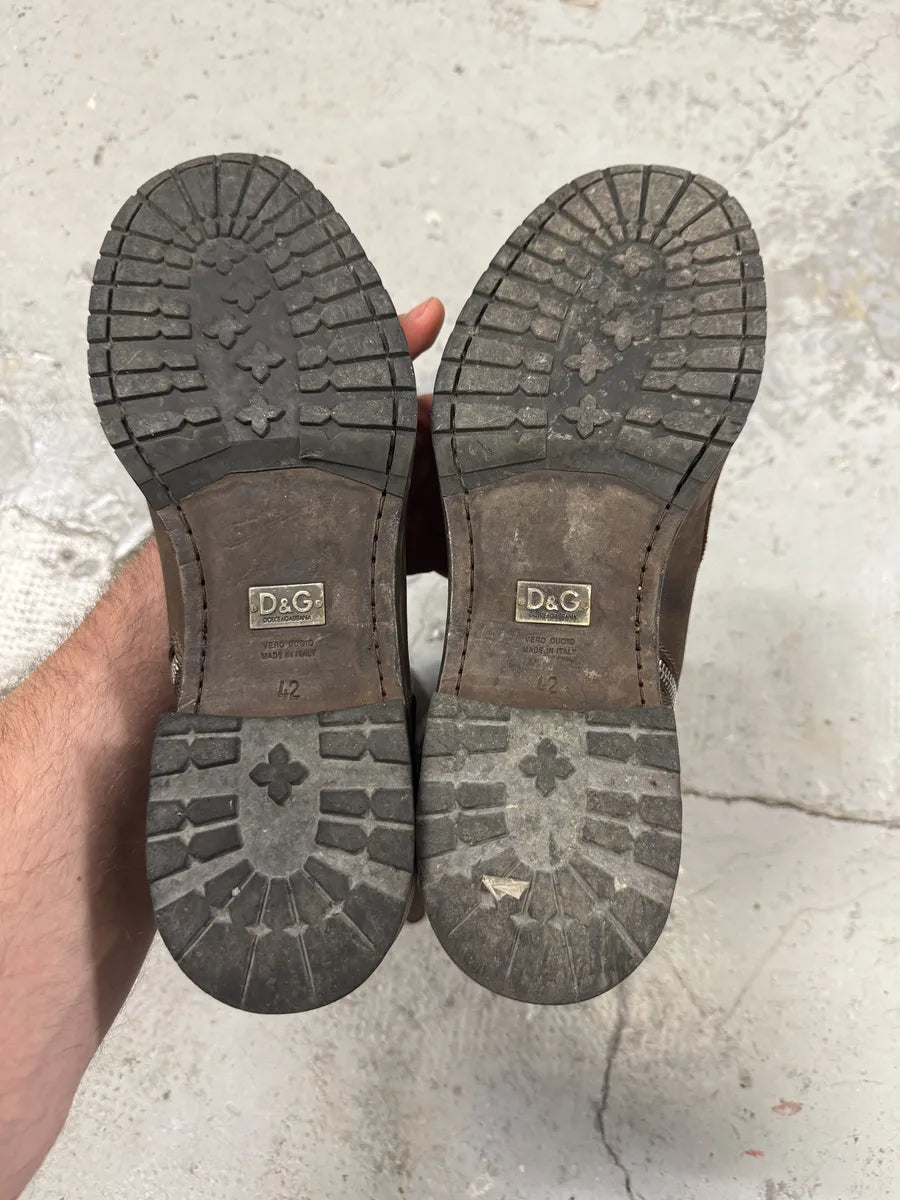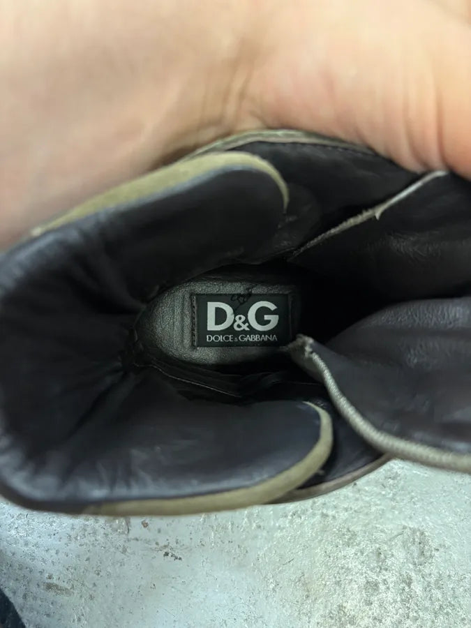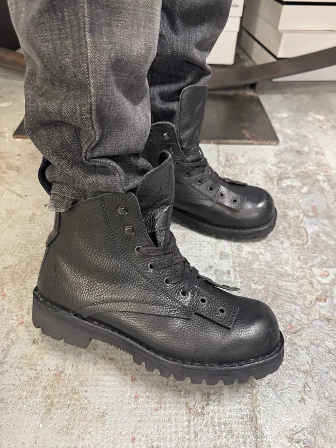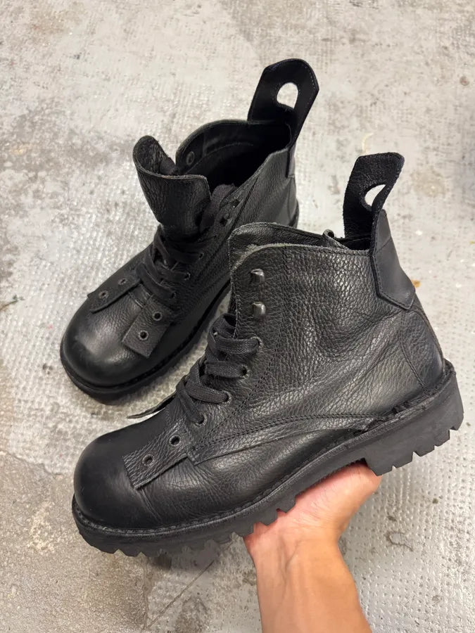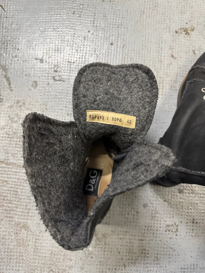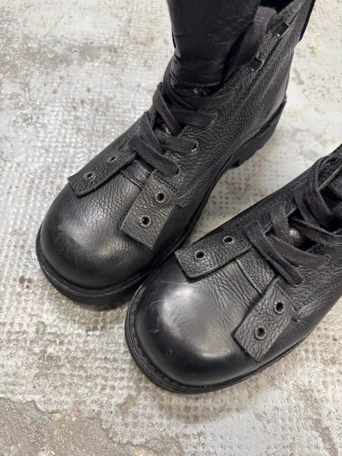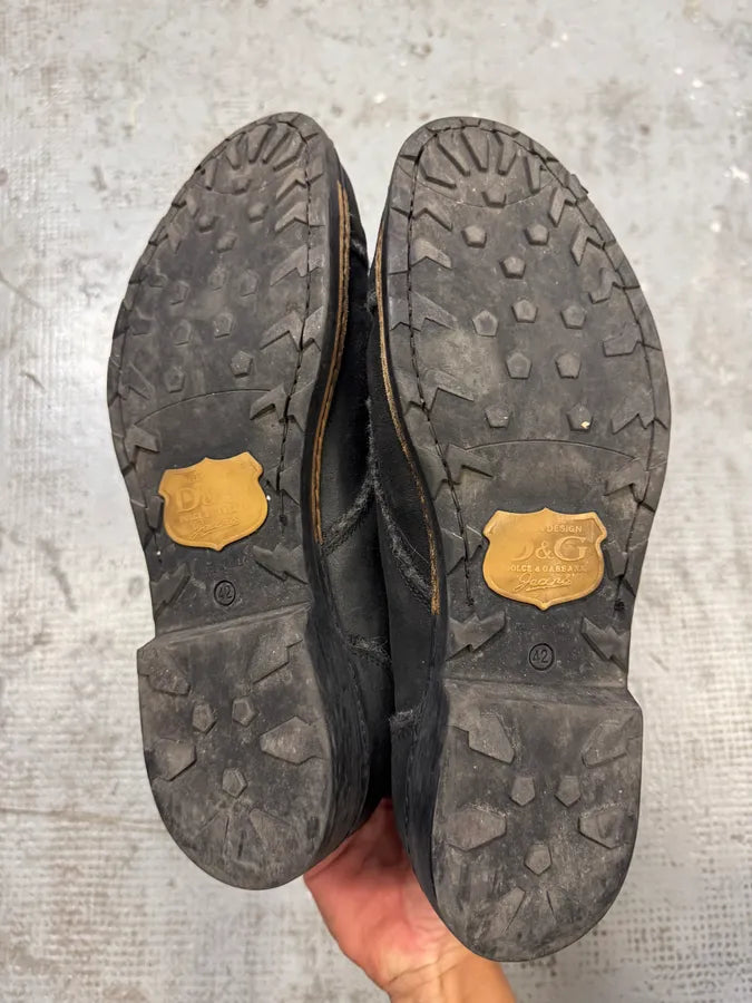 2000s Dolce & Gabbana Army Lace-Up Black Leather Boots -