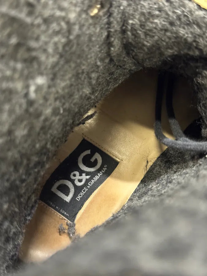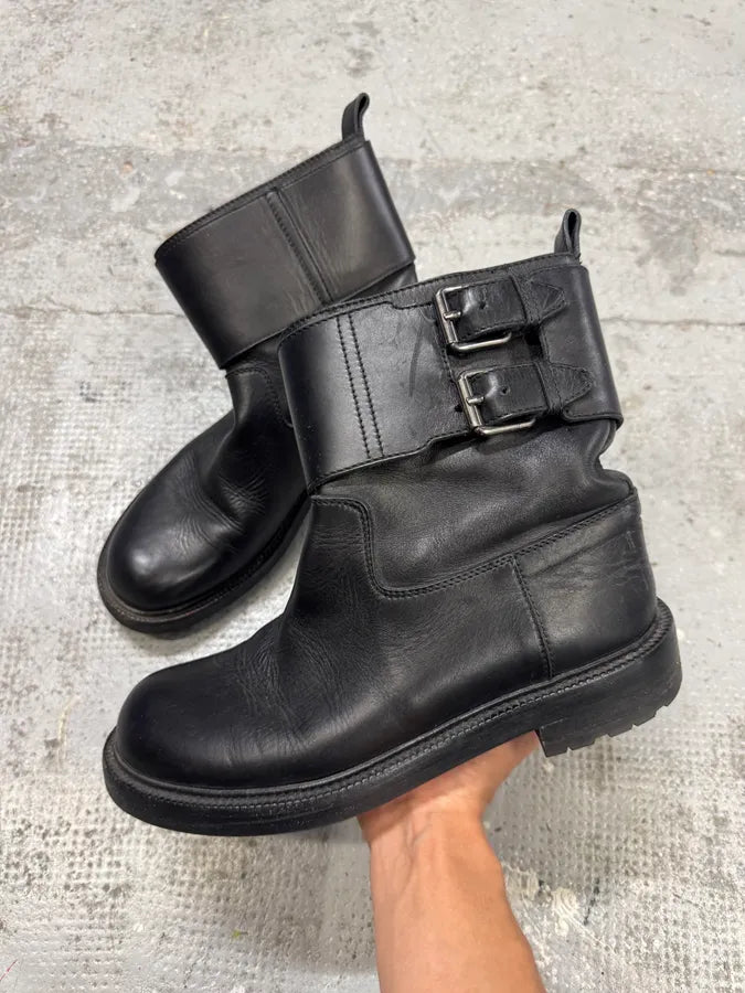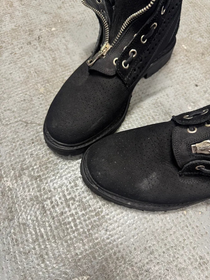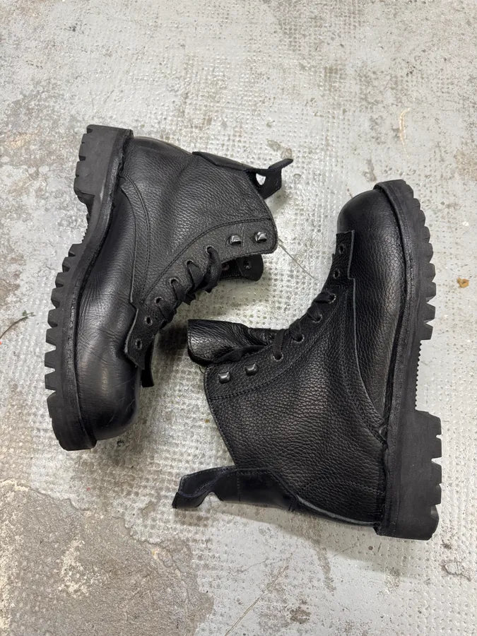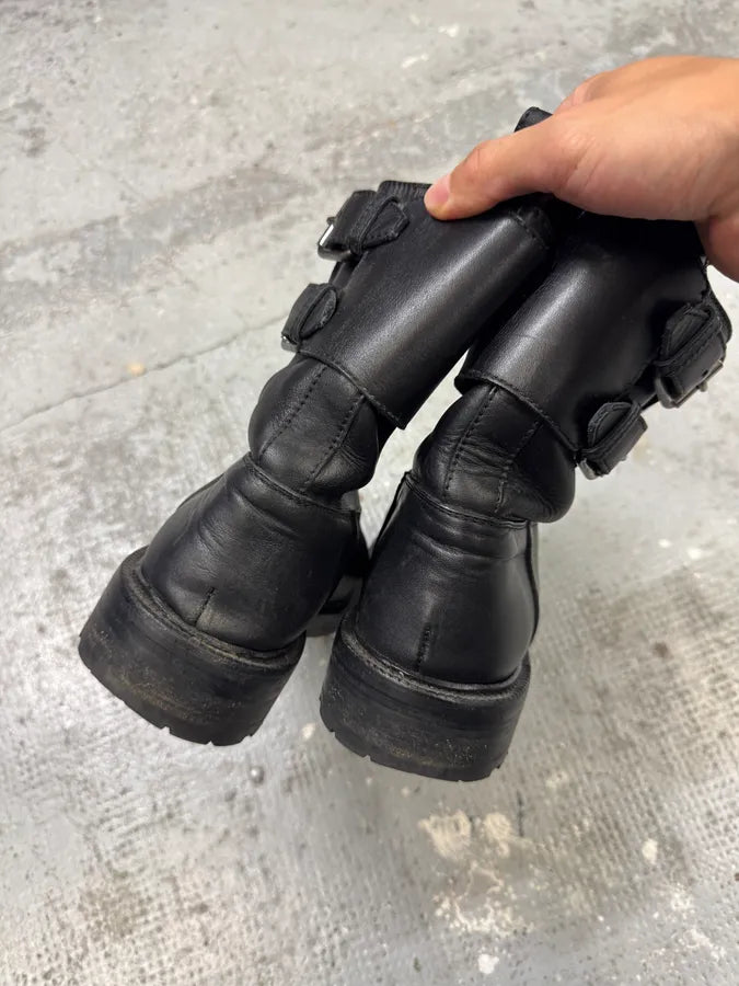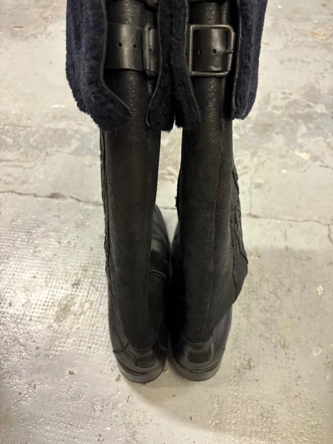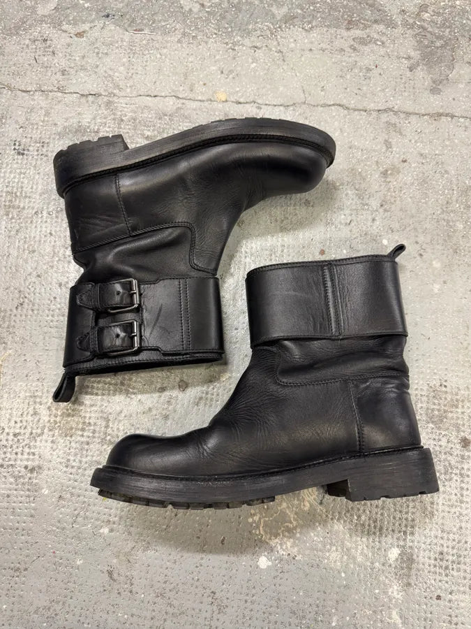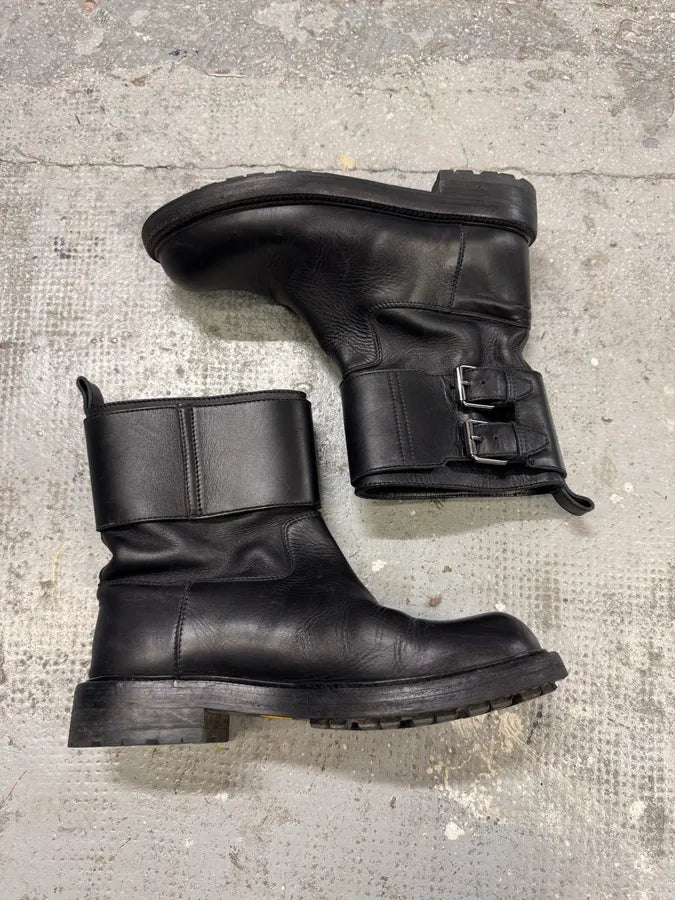 2000s Dolce & Gabbana Army Lace-Up Black Leather Boots -