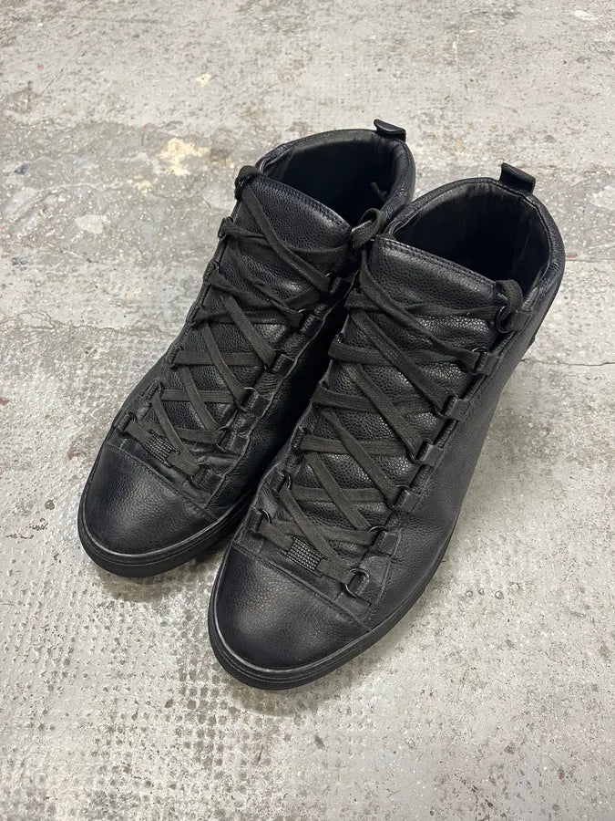 Balenciaga Arena Grey Grained Leather Sneakers -