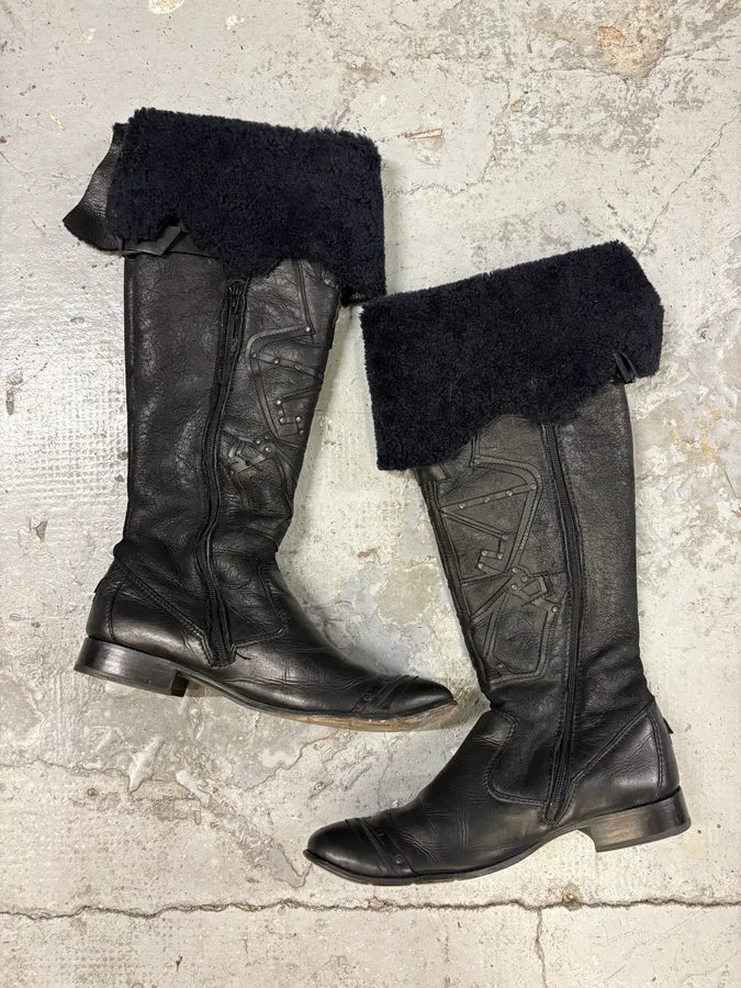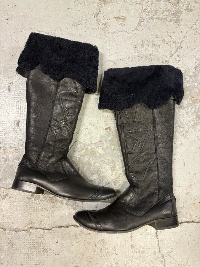 2010s Maison Margiela Black Nail Sole Leather Boots -