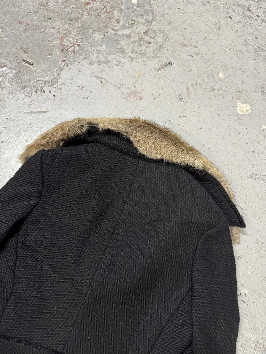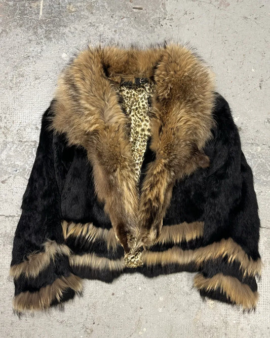 2000s Armani Reversible 2 in 1 Avant-Garde Black Rustic Fur Jacket -