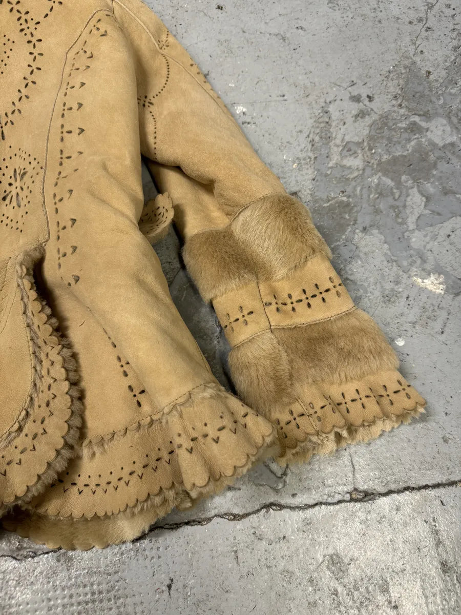 AW2003 Roberto Cavalli Beige Leather Hearts Shearling Jacket -