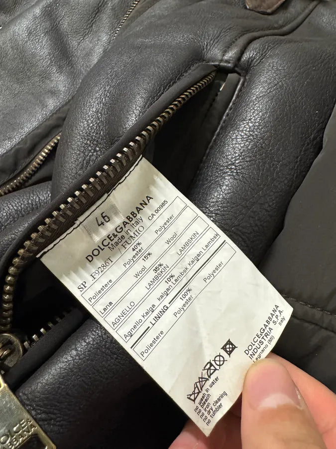 2000s Dolce & Gabbana Olive Green Nylon Lambskin Leather Jacket -