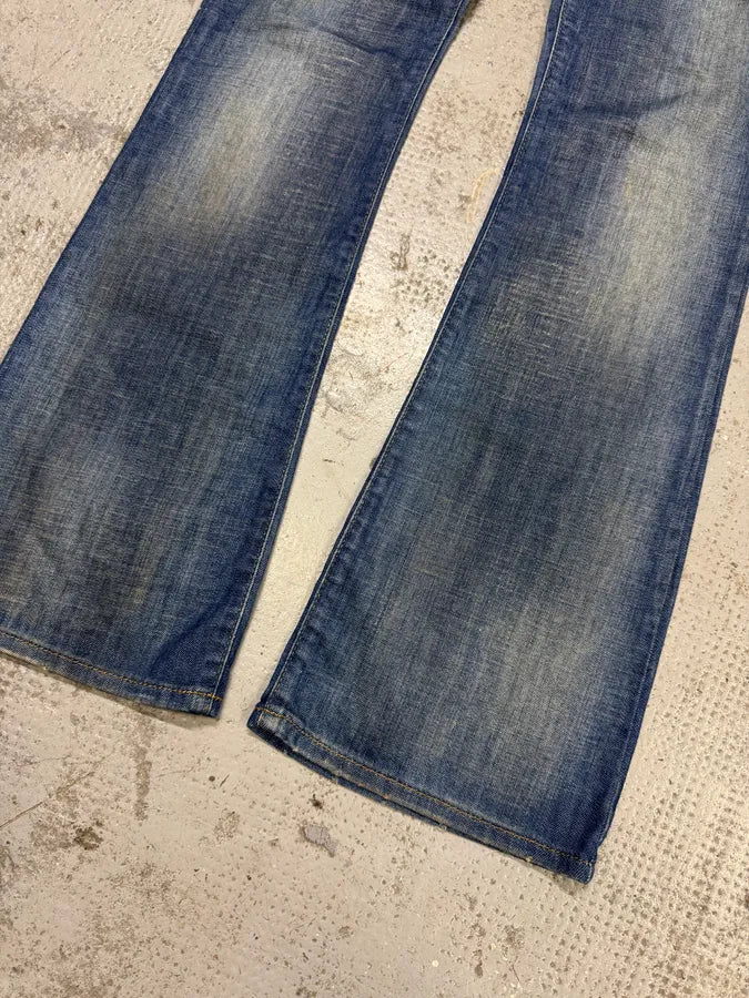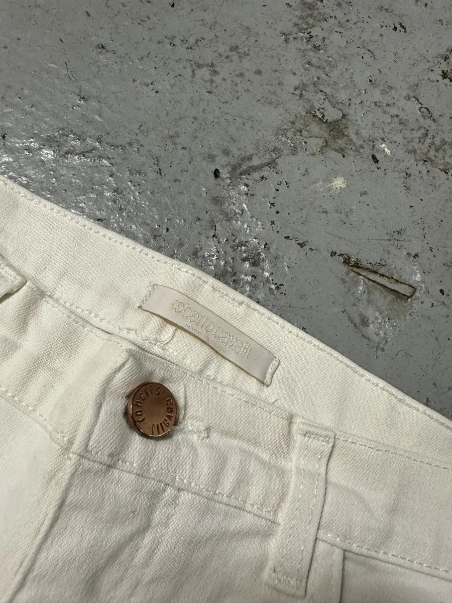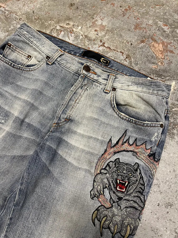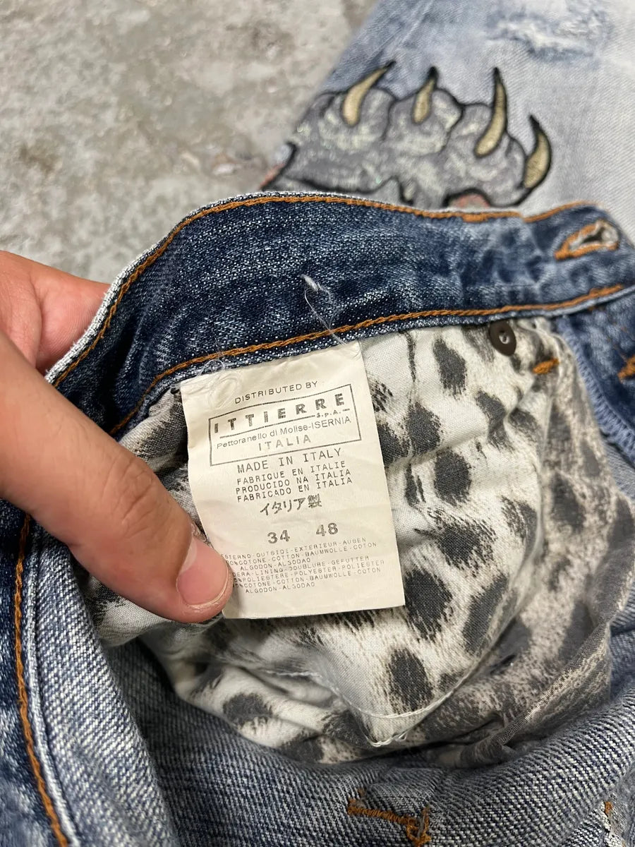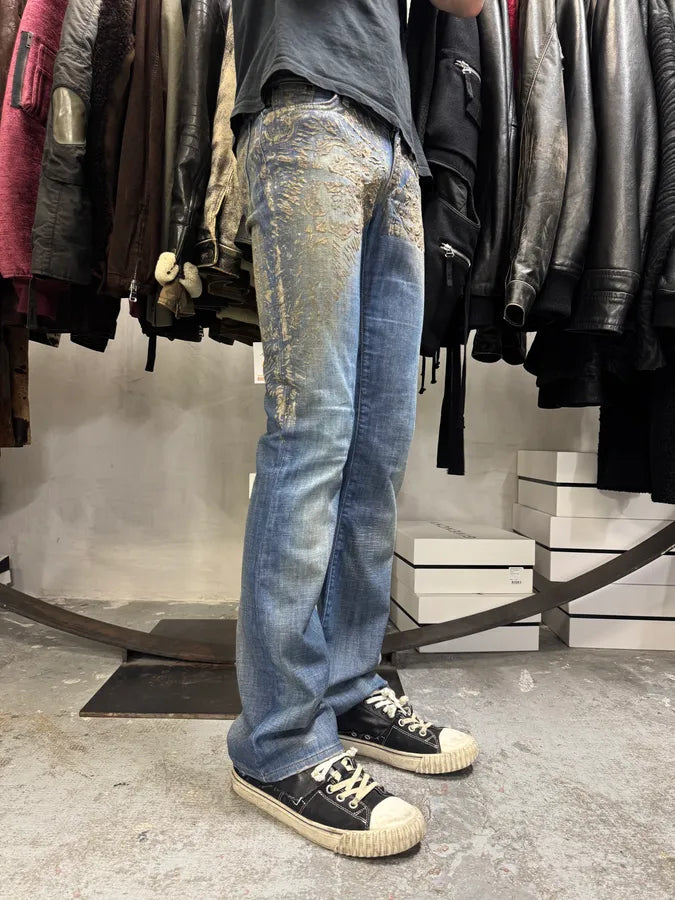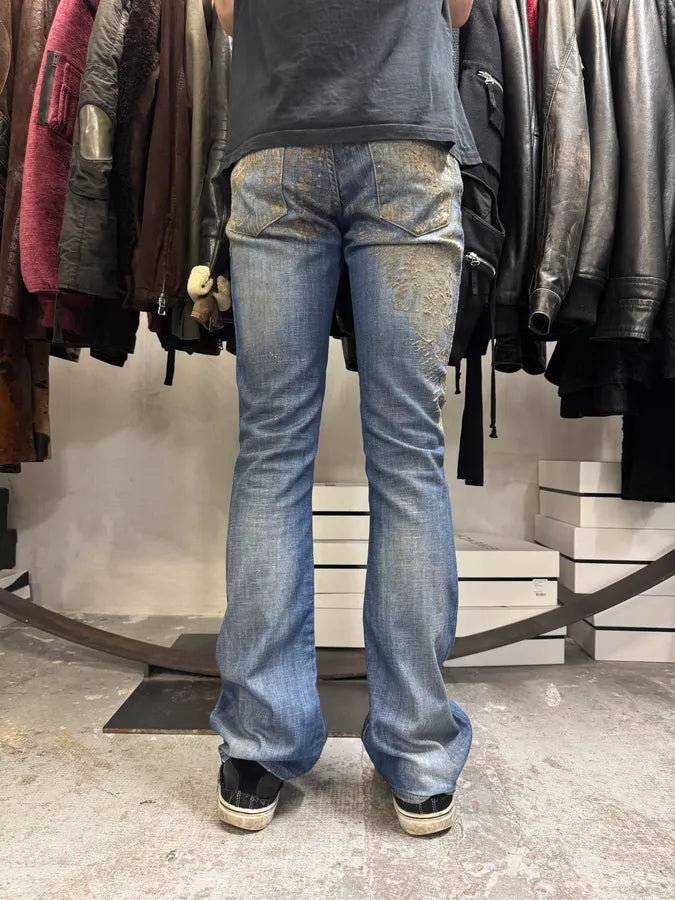 2000s Cavalli Blue World Eroded Denim Jeans
