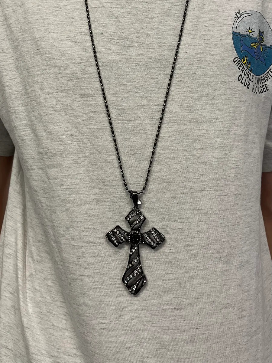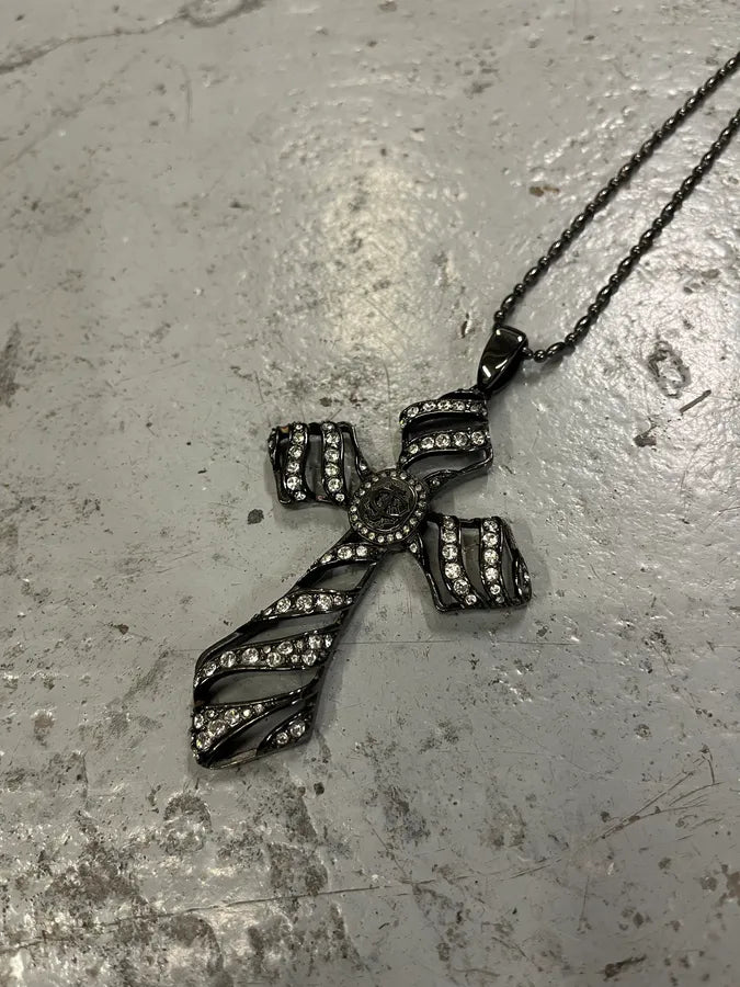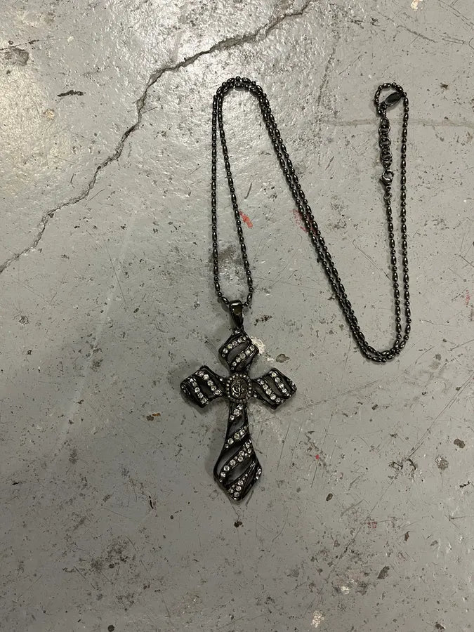 2000s Dolce & Gabbana Grey Rosary Cross Necklace