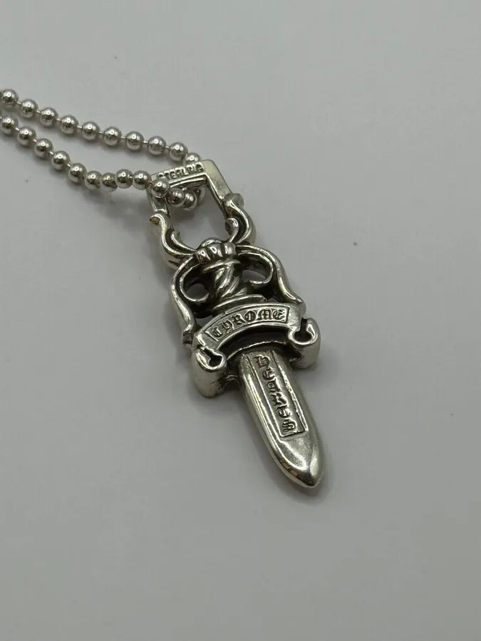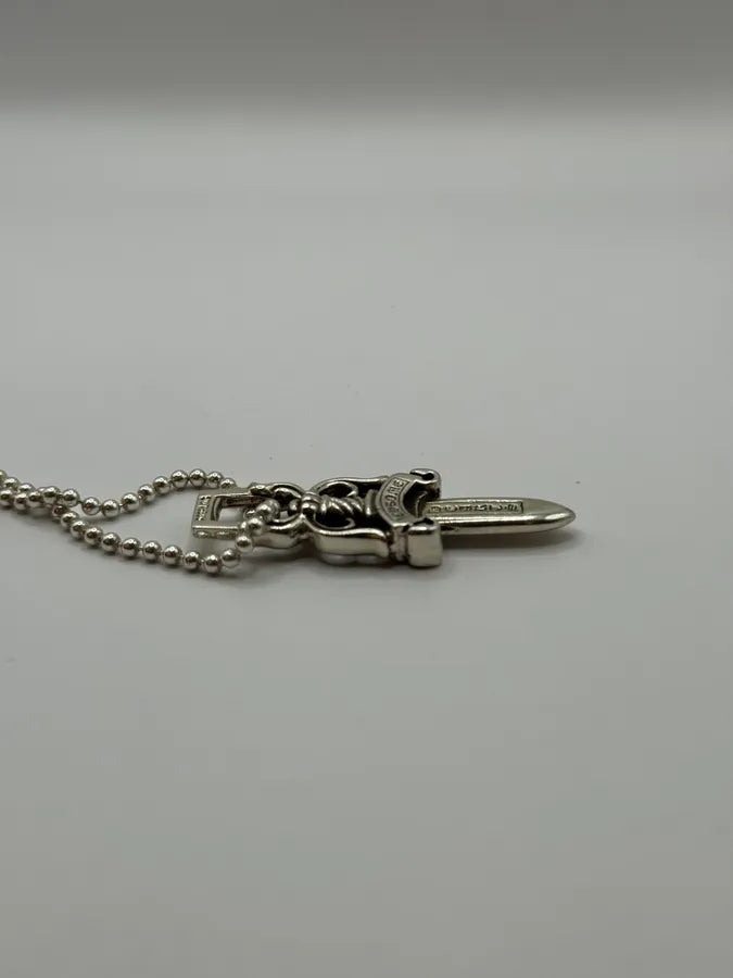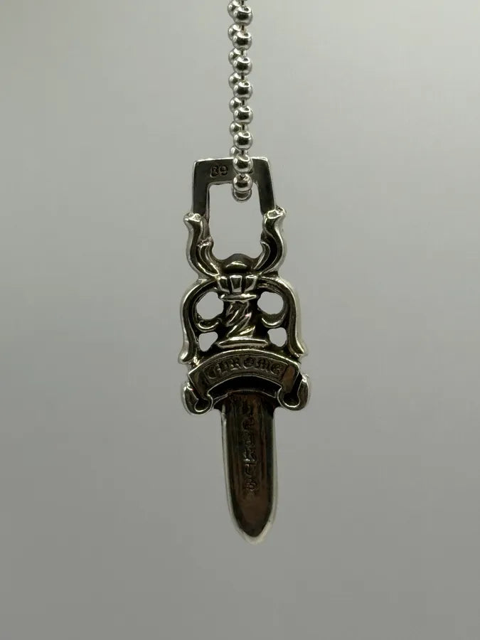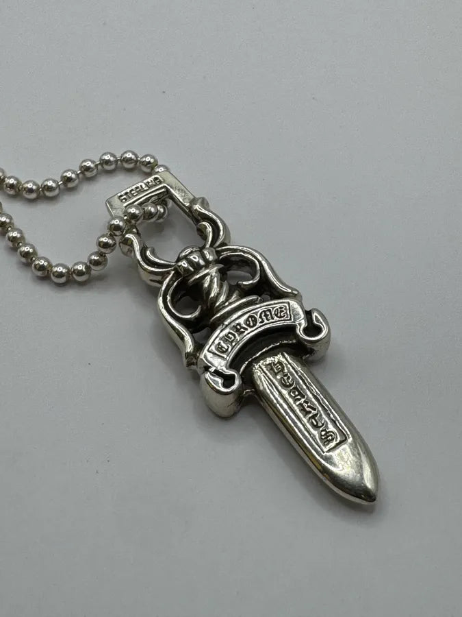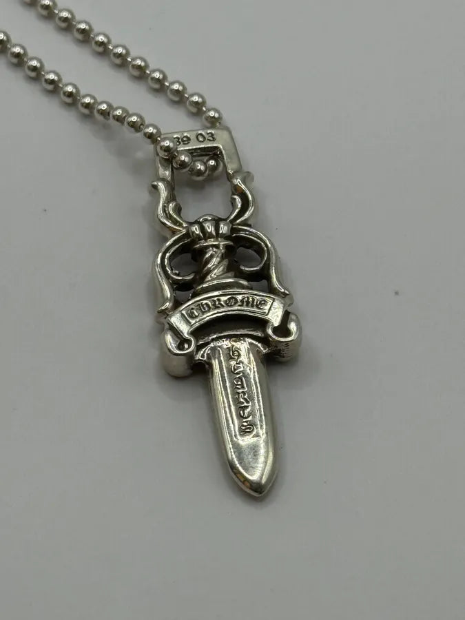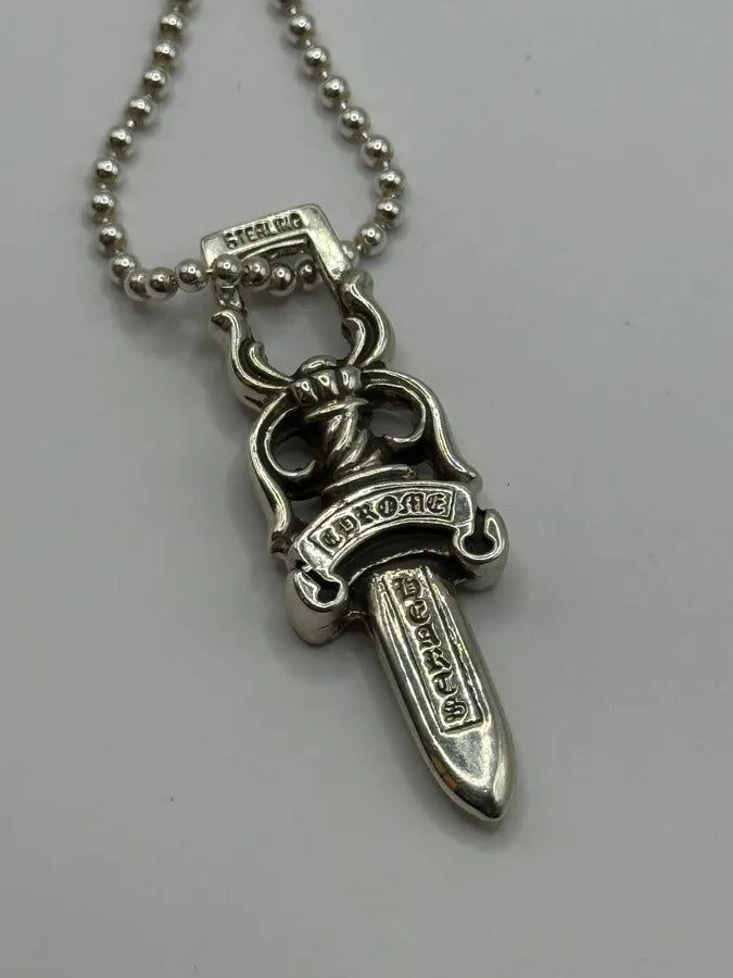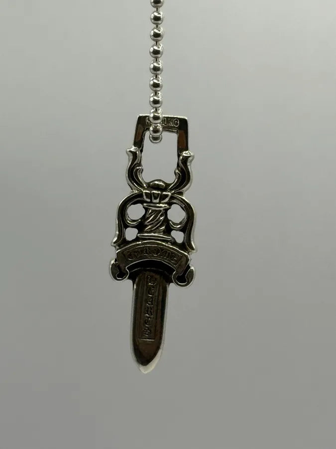 2000s Cesare Paciotti Dagger Rosary White Pearls Silver Necklace -