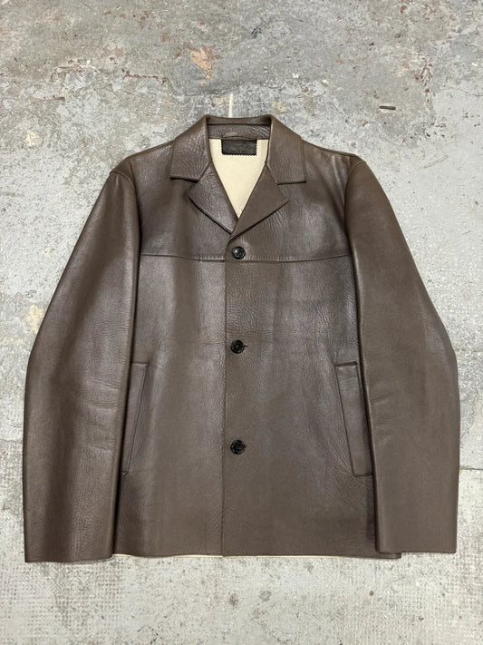 2000s Premiata Avant-Garde Raw Brown Leather Jacket -