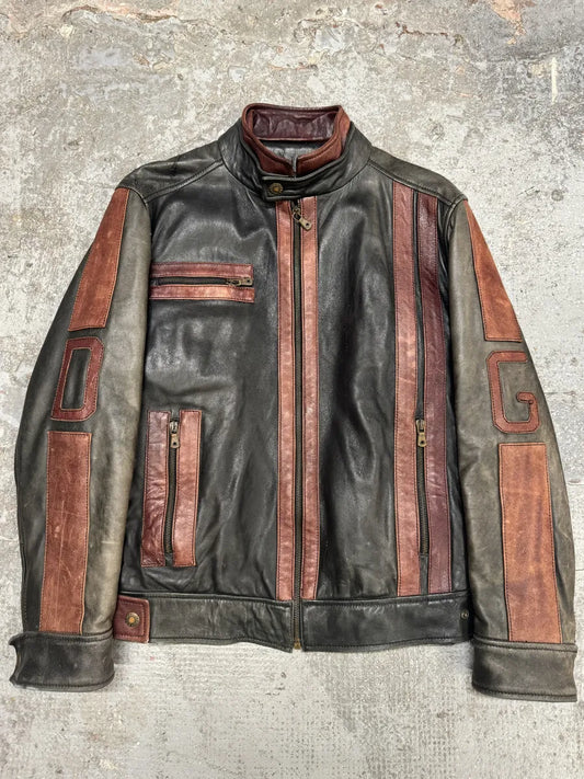 2000s Dirk Bikkembergs Multi Zips Brown Eroded Leather Jacket