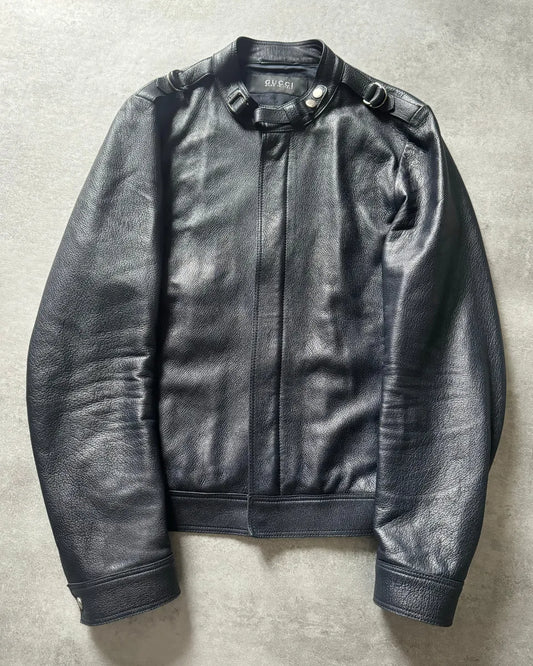 2000s Gianfranco Ferré Black Leather Trucker Jacket -