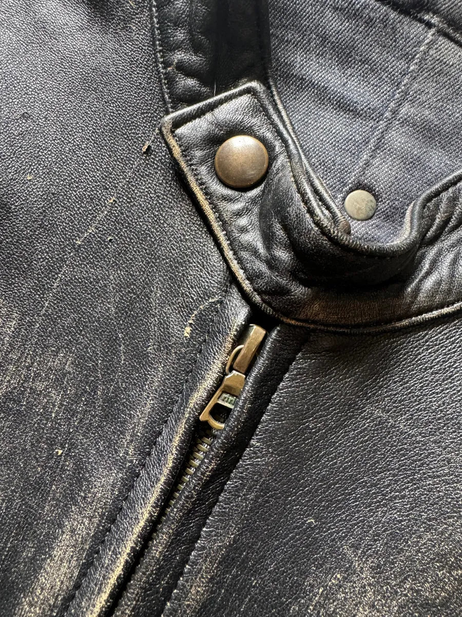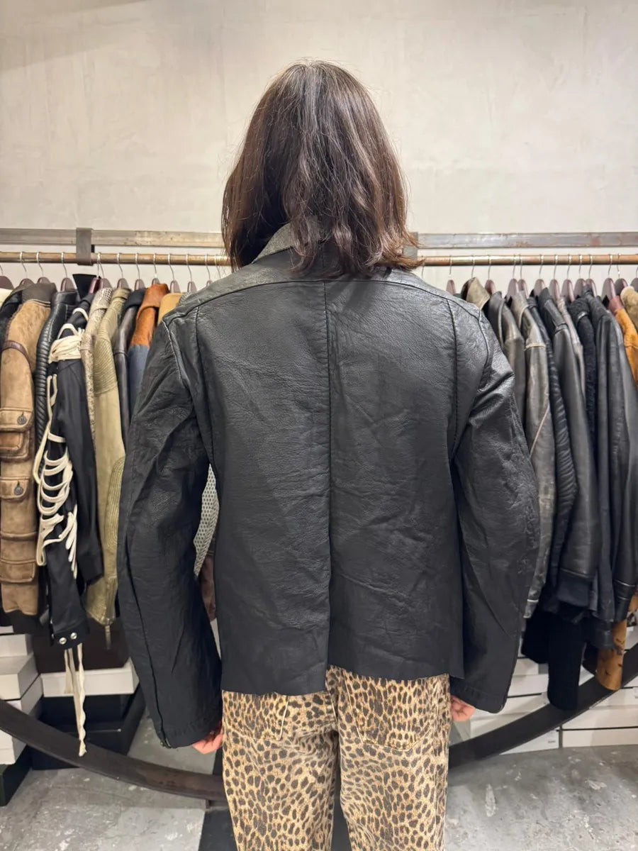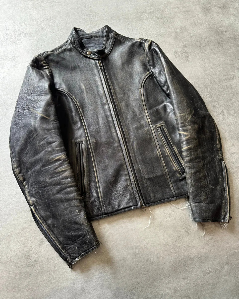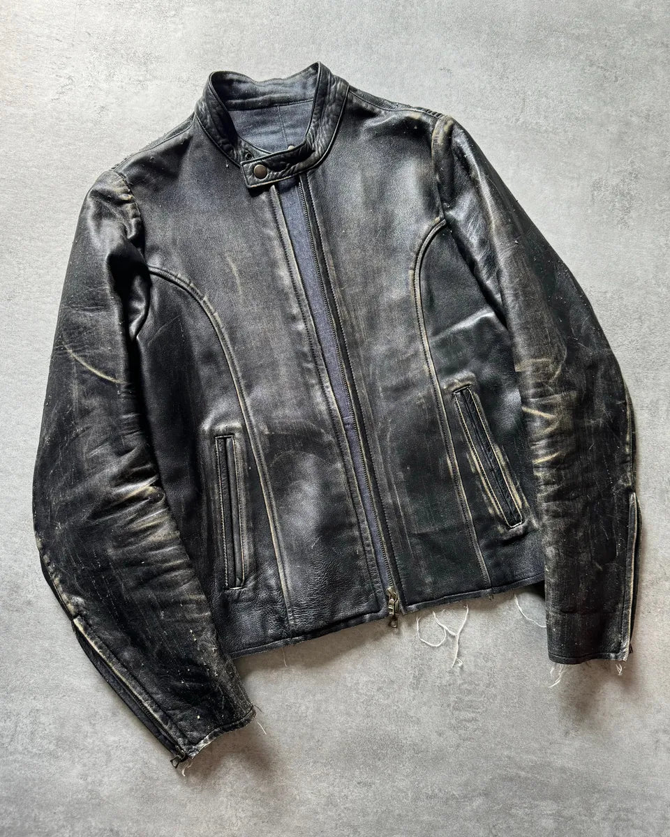 2000s Marithé + François Girbaud Black Plissed Zip-up Leather Jacket -