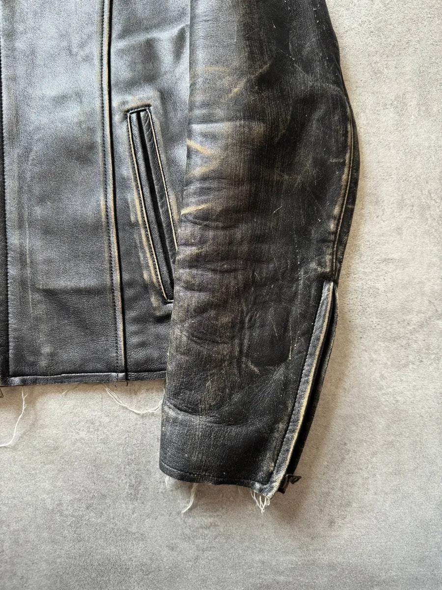 2000s Massimo Rebecchi Biker Raw Brown Leather Jacket -