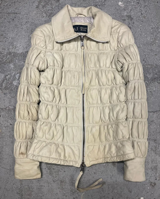 SS2017 Emporio Armani Biker Navy & White Leather Jacket -