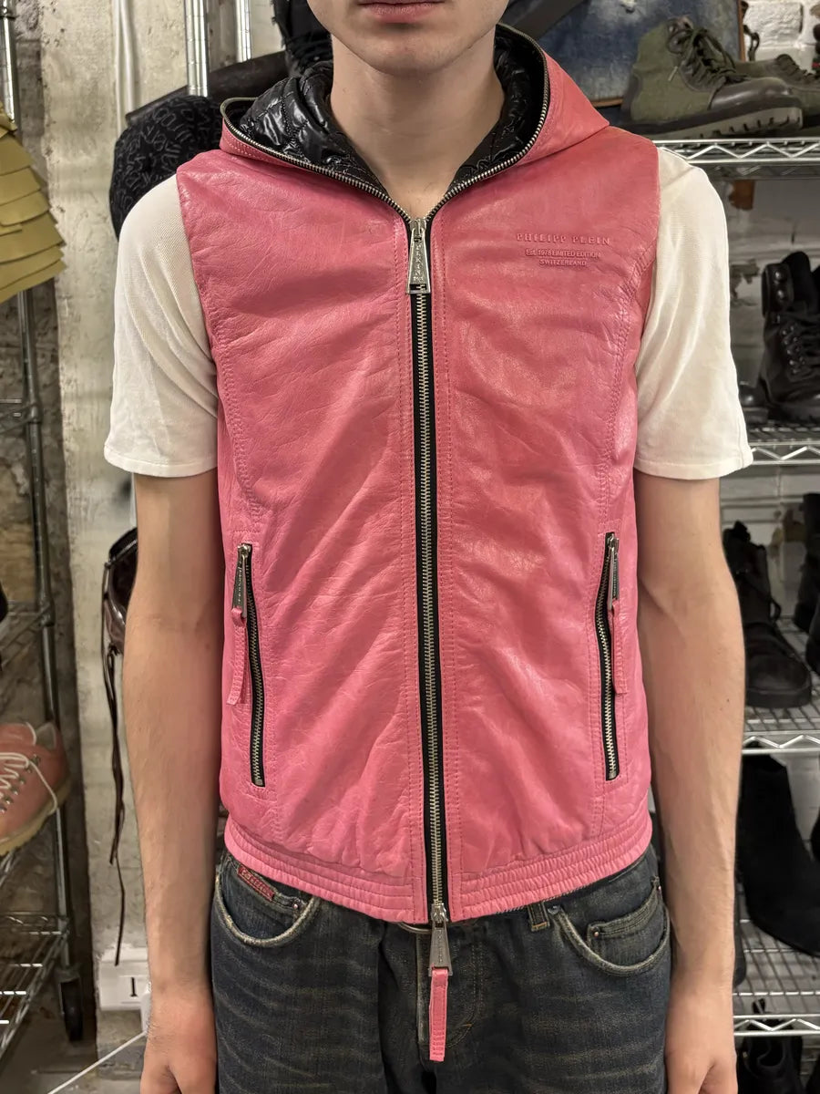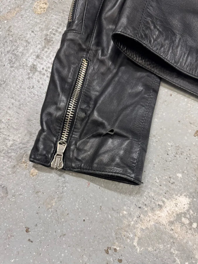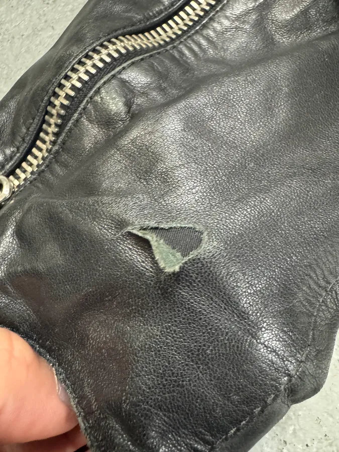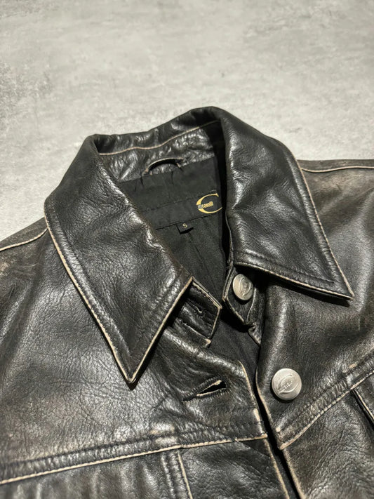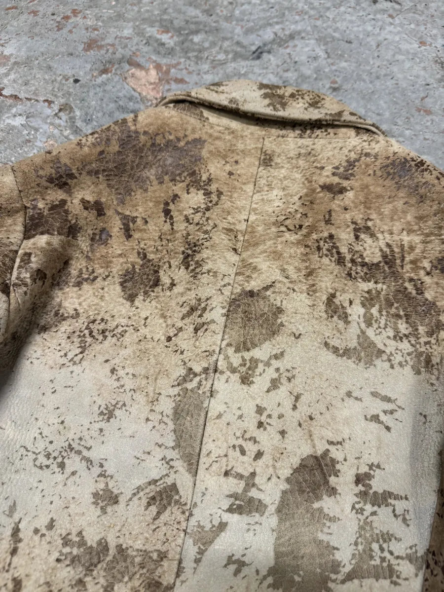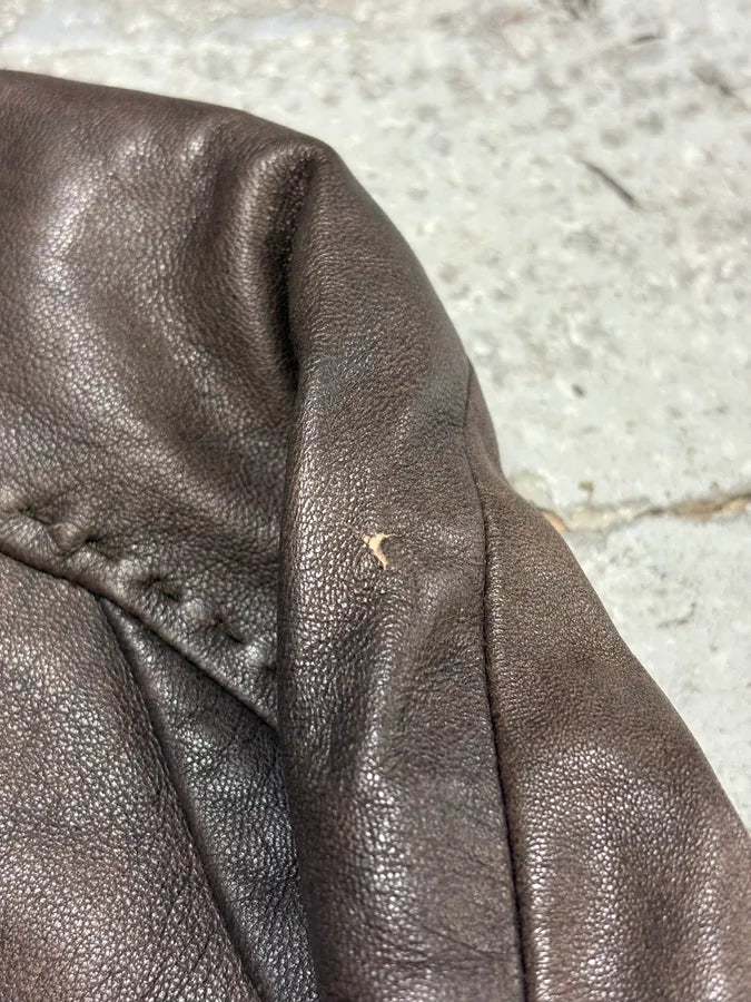 2000s Eroded Brown Archive Leather Jacket with Detachable Sleeves -