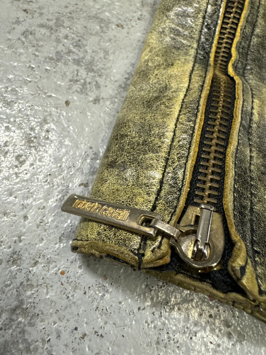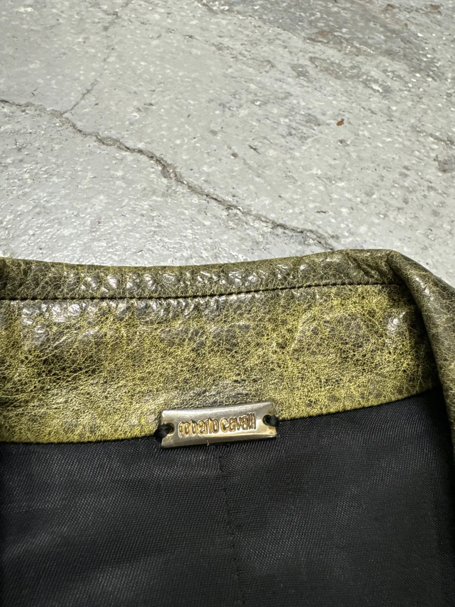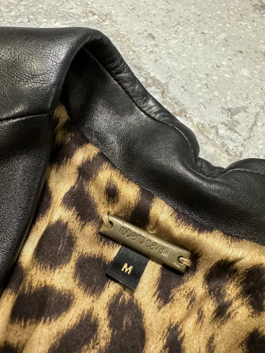 SS2001 Roberto Cavalli Navy Blue Perfecto Biker Leather Jacket -