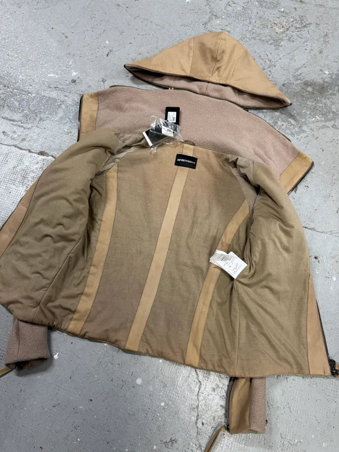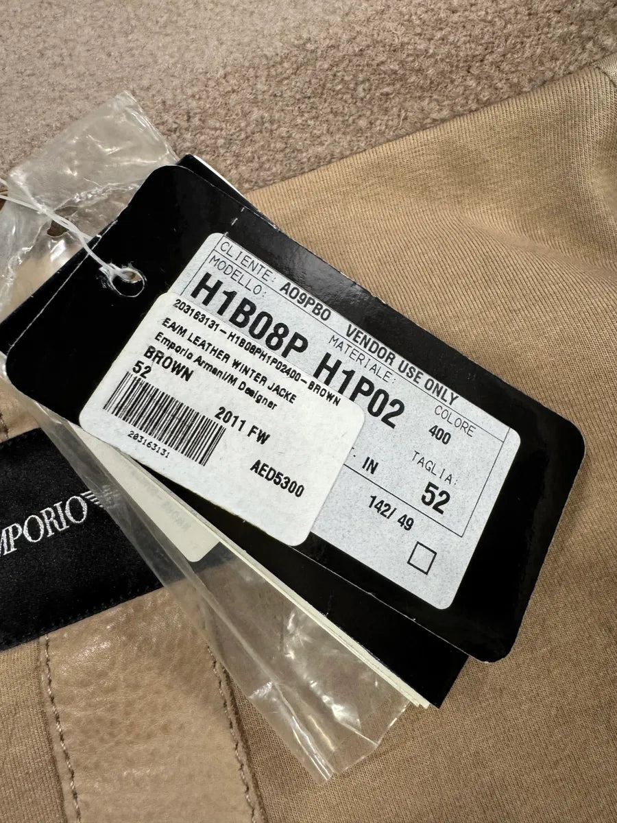 FW2012 Emporio Armani Shearling Black Leather Jacket -