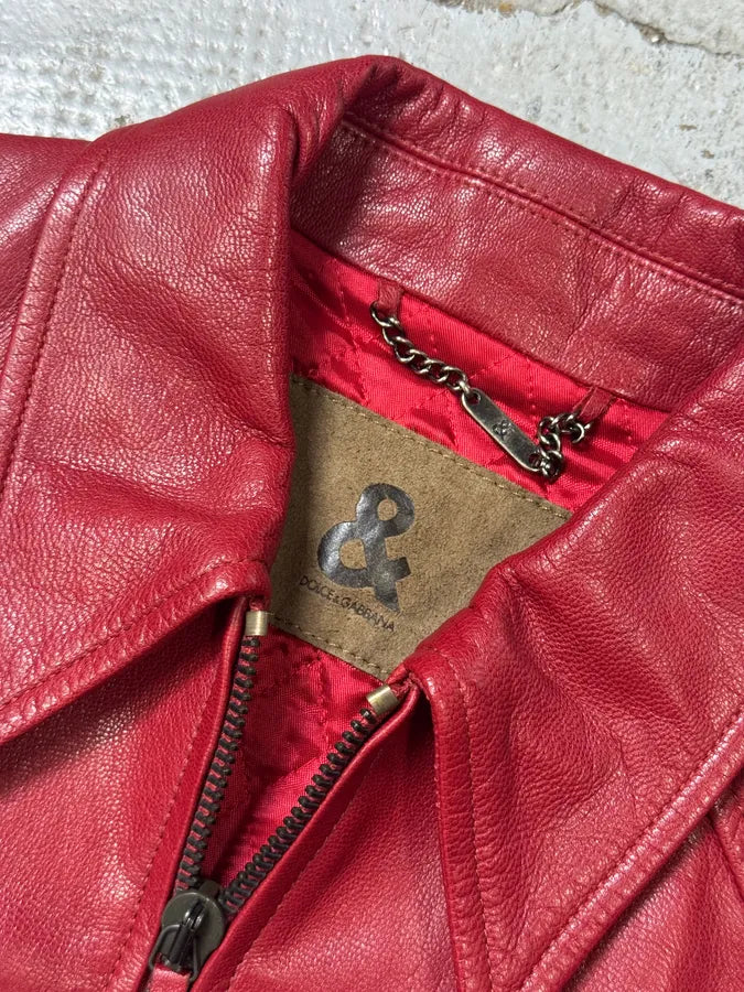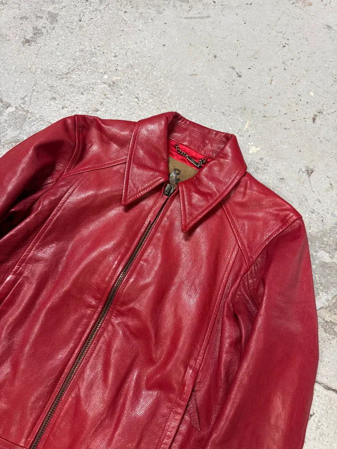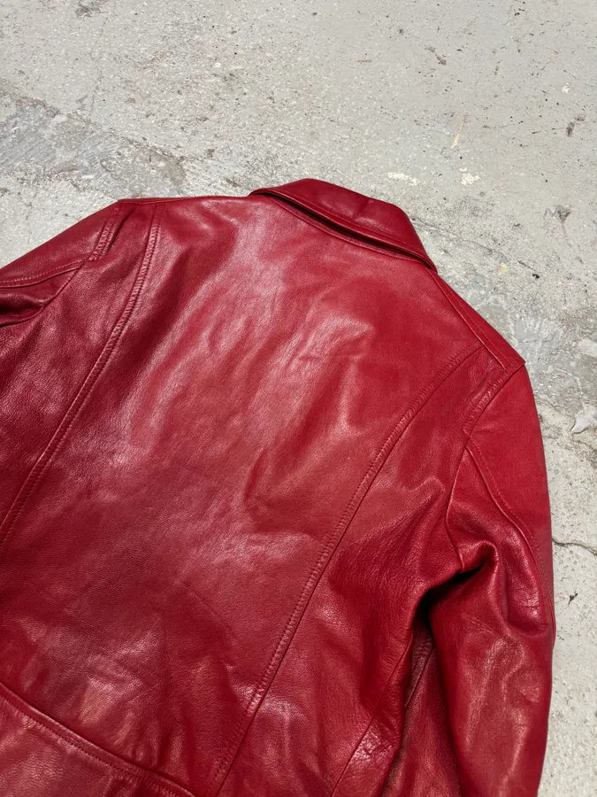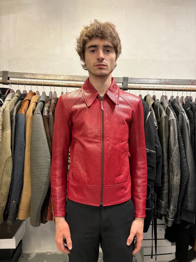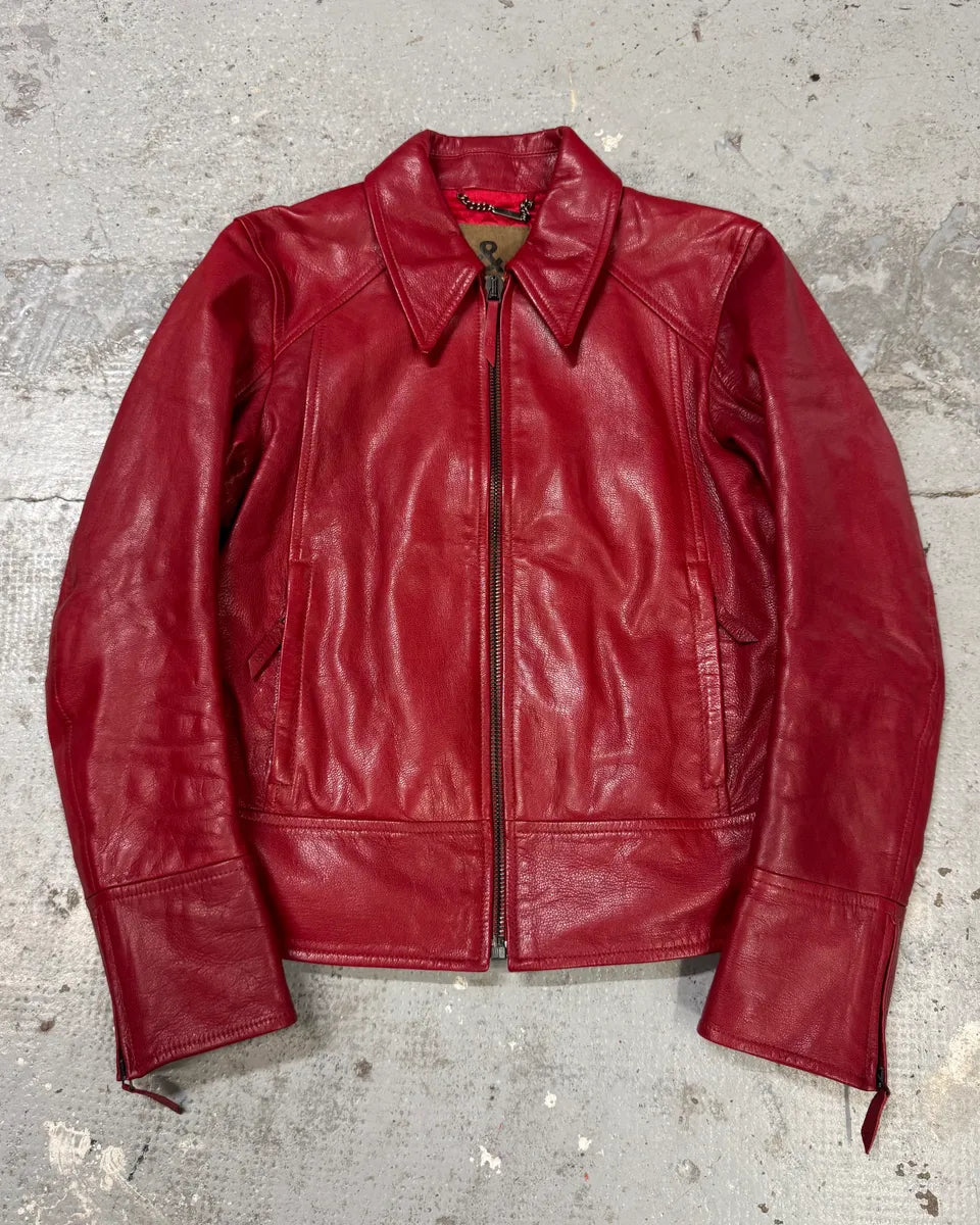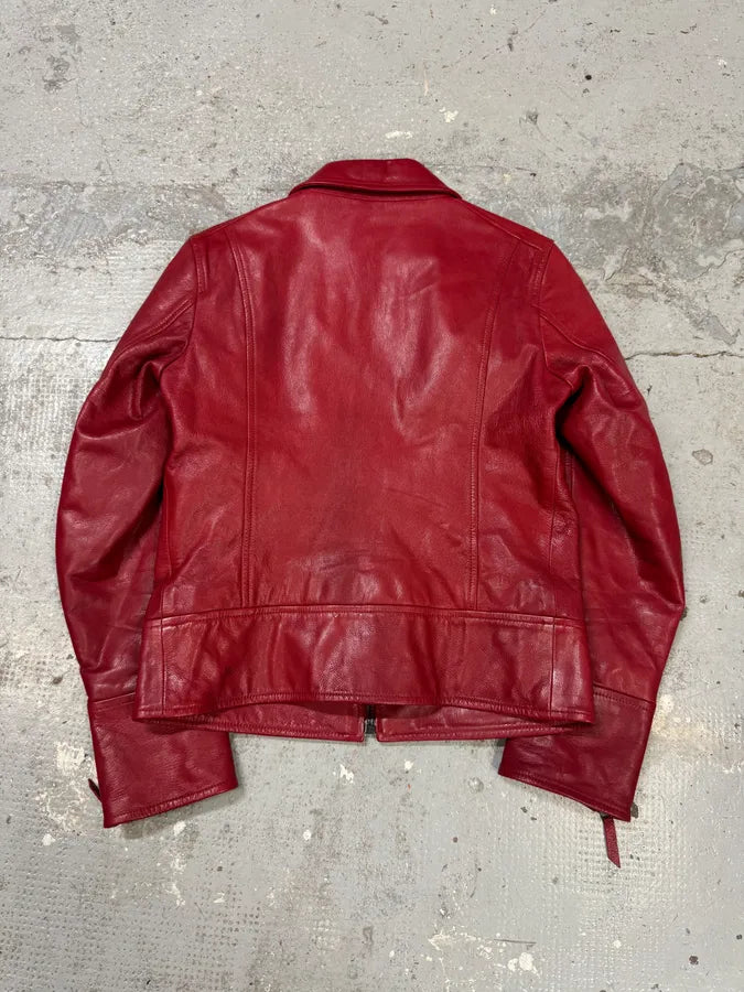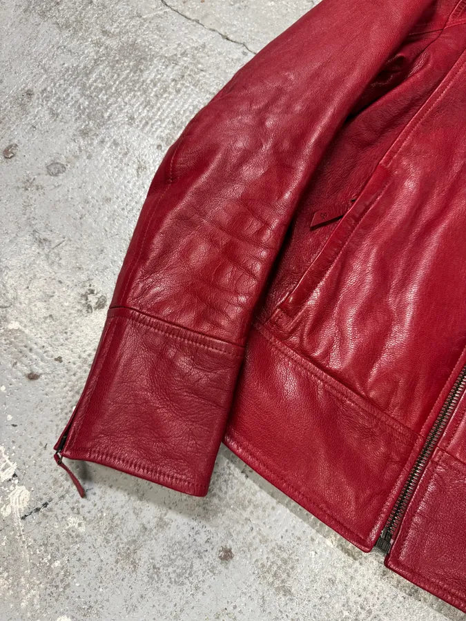 Jil Sander Red Premium Biker Leather Jacket -