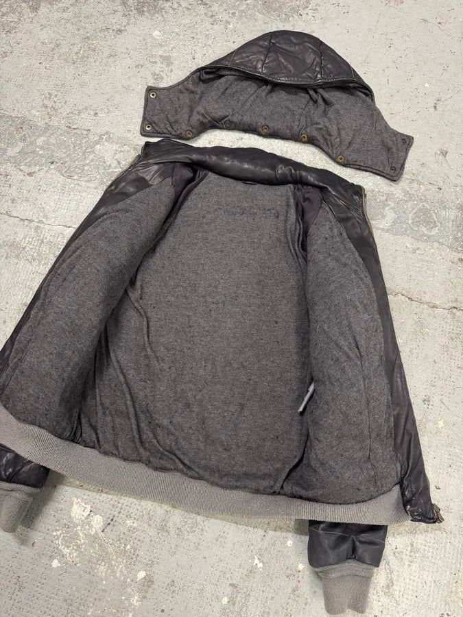 2010s Rick Owens Grey Hybrid Brut Leather Jacket -