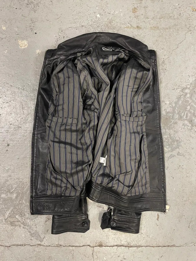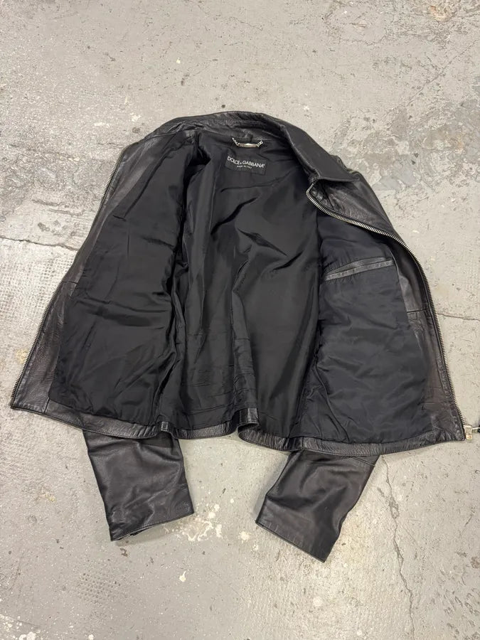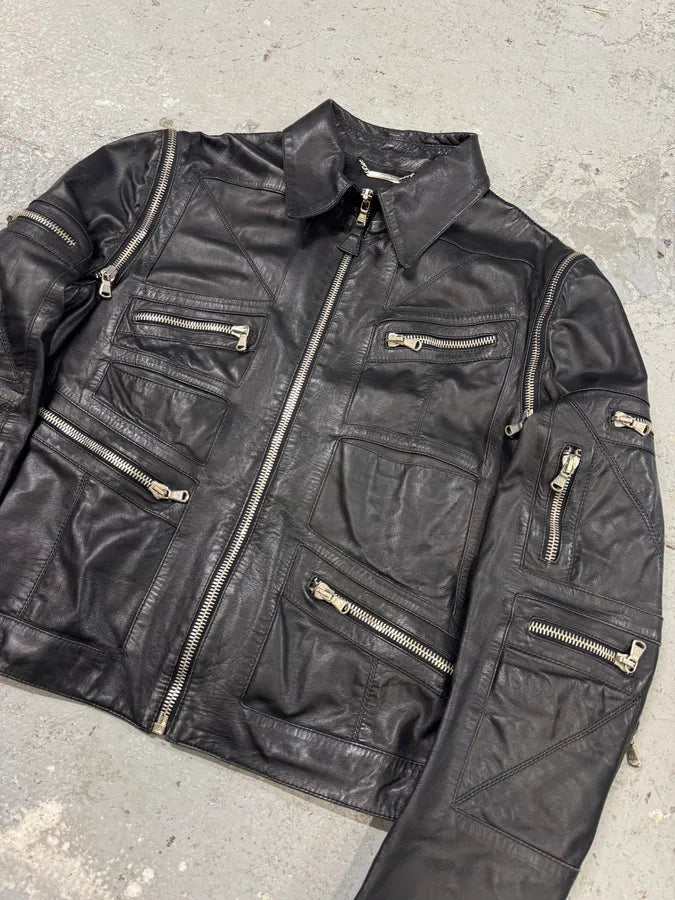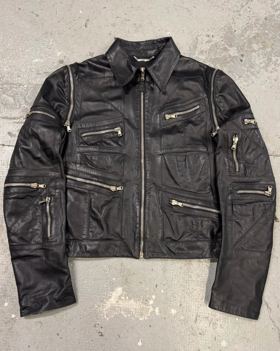 AW2010 Dolce & Gabbana Black Multi Zips Leather Jacket -