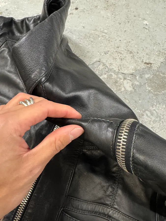 FW2000 Gucci Black Premium Minimalist Leather Jacket -