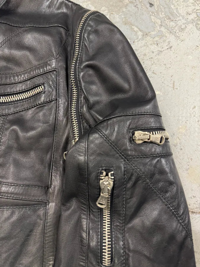 2000s Gucci Asymmetrical Black Leather Jacket -