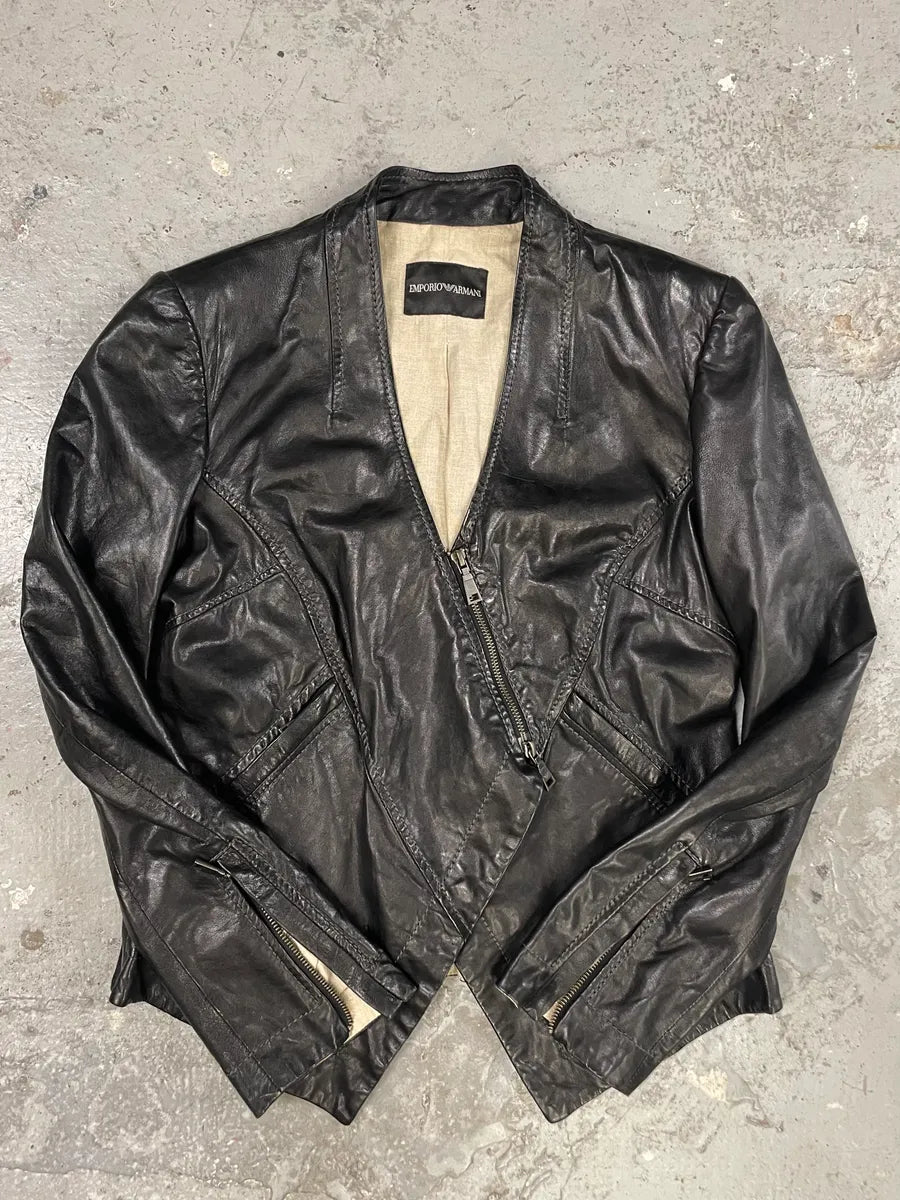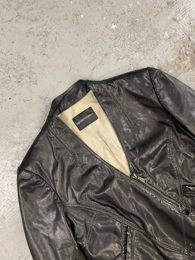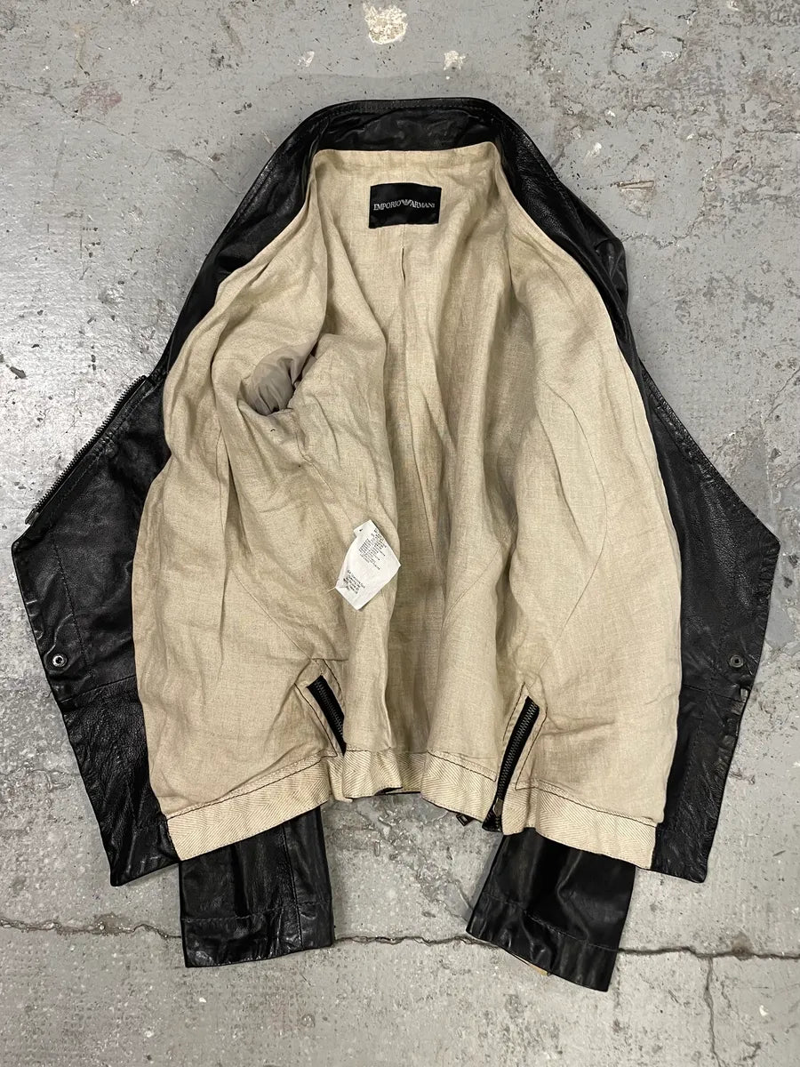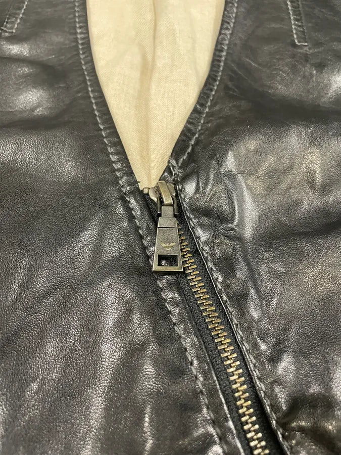 FW2018 Emporio Armani Biker Padded Black Leather Jacket -