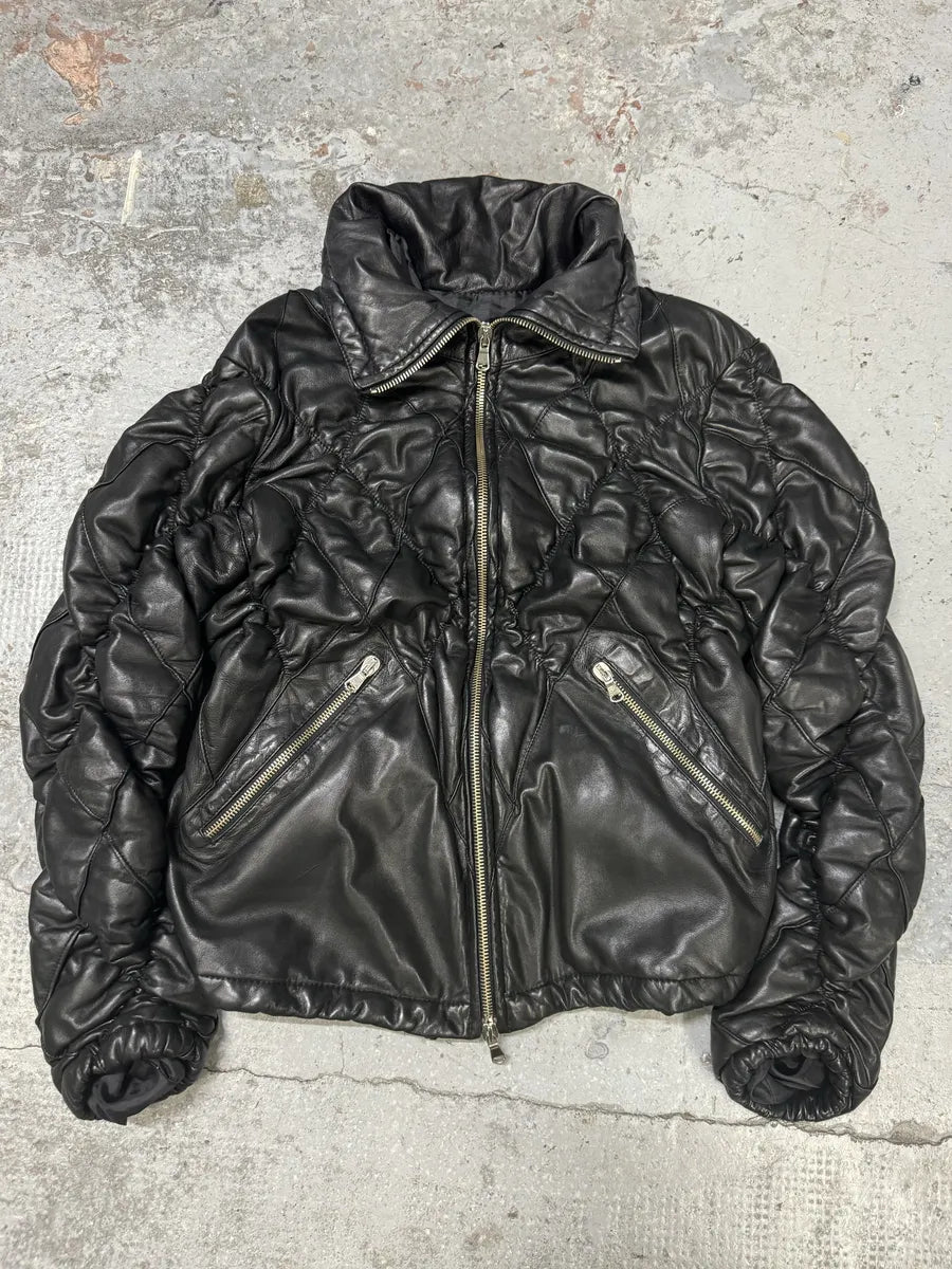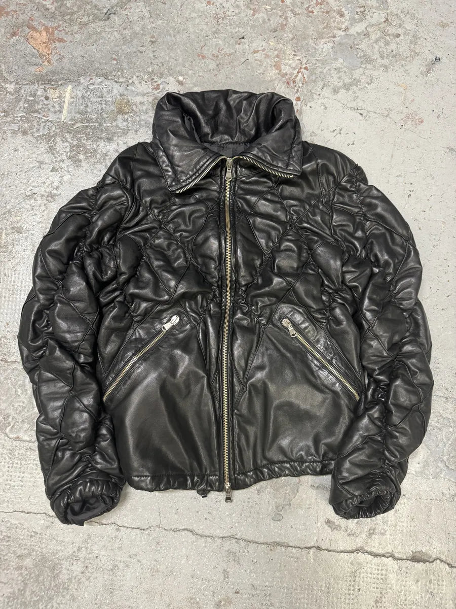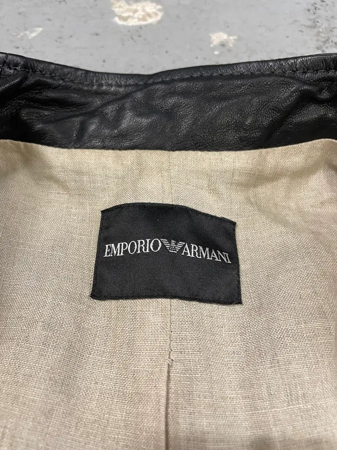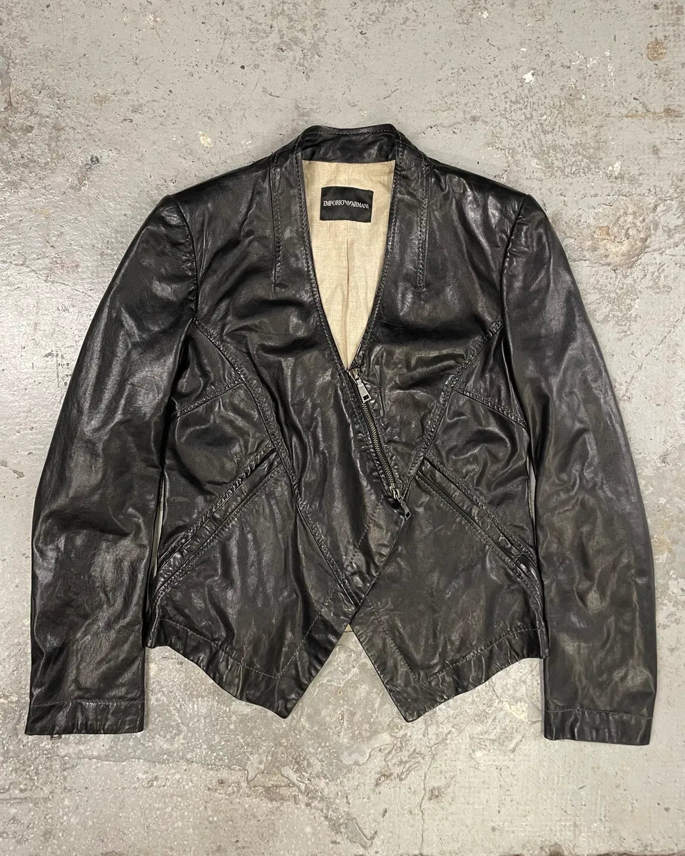FW2018 Emporio Armani Biker Padded Black Leather Jacket -