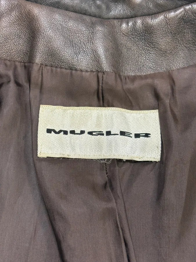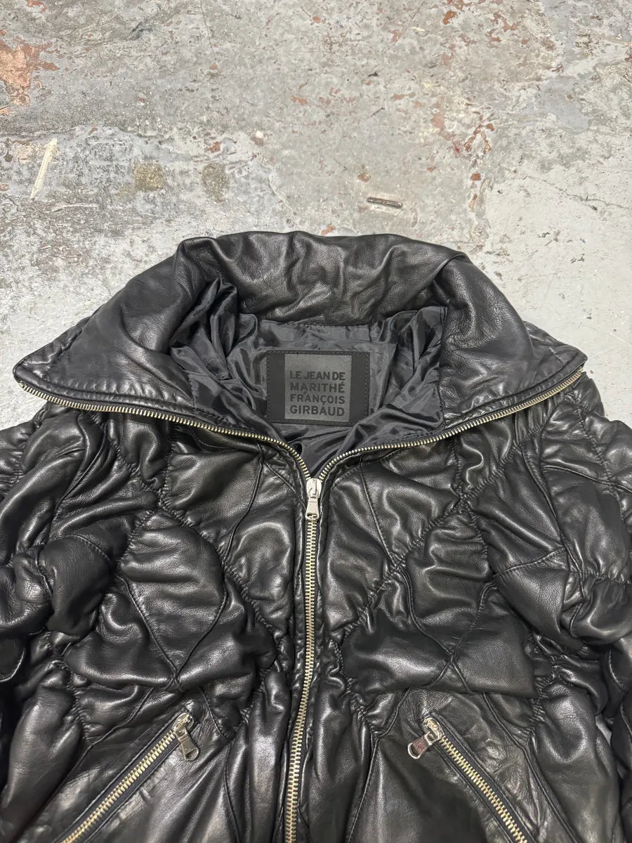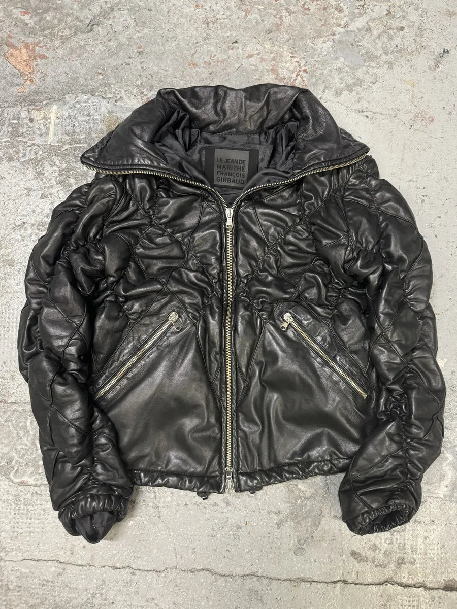 2000s Marithé + François Girbaud Brown Plissed Leather Jacket -