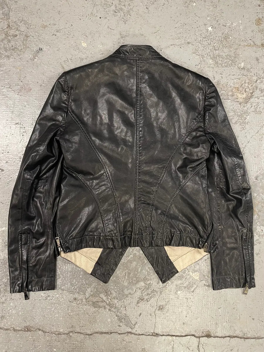 2000s Marithé + François Girbaud Asymmetrical Buttoned Leather Jacket -