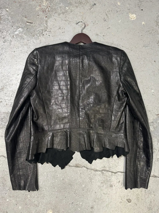 2000s Roberto Cavalli Asymmetrical Blue Python Effect Jacket -