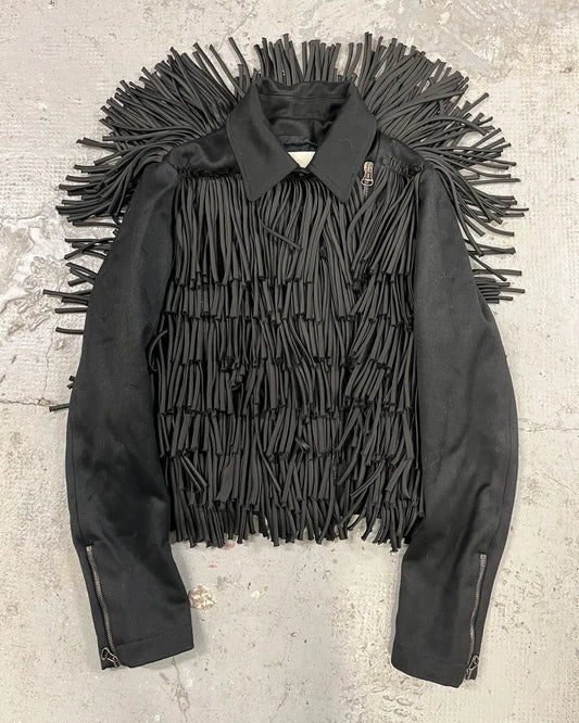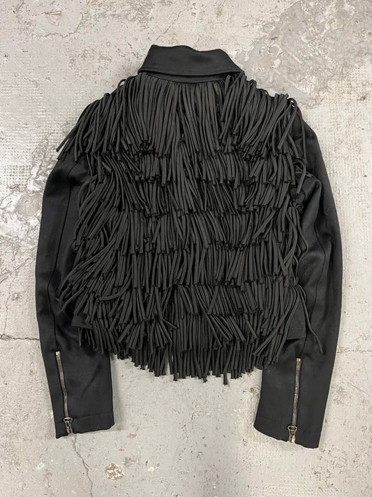 1990s Yves Saint Laurent Red & White Wool Fringe Jacket -