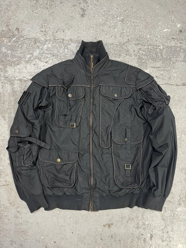 Gianfranco Ferré Black Signature Nylon Jacket with Detachable Sleeves -