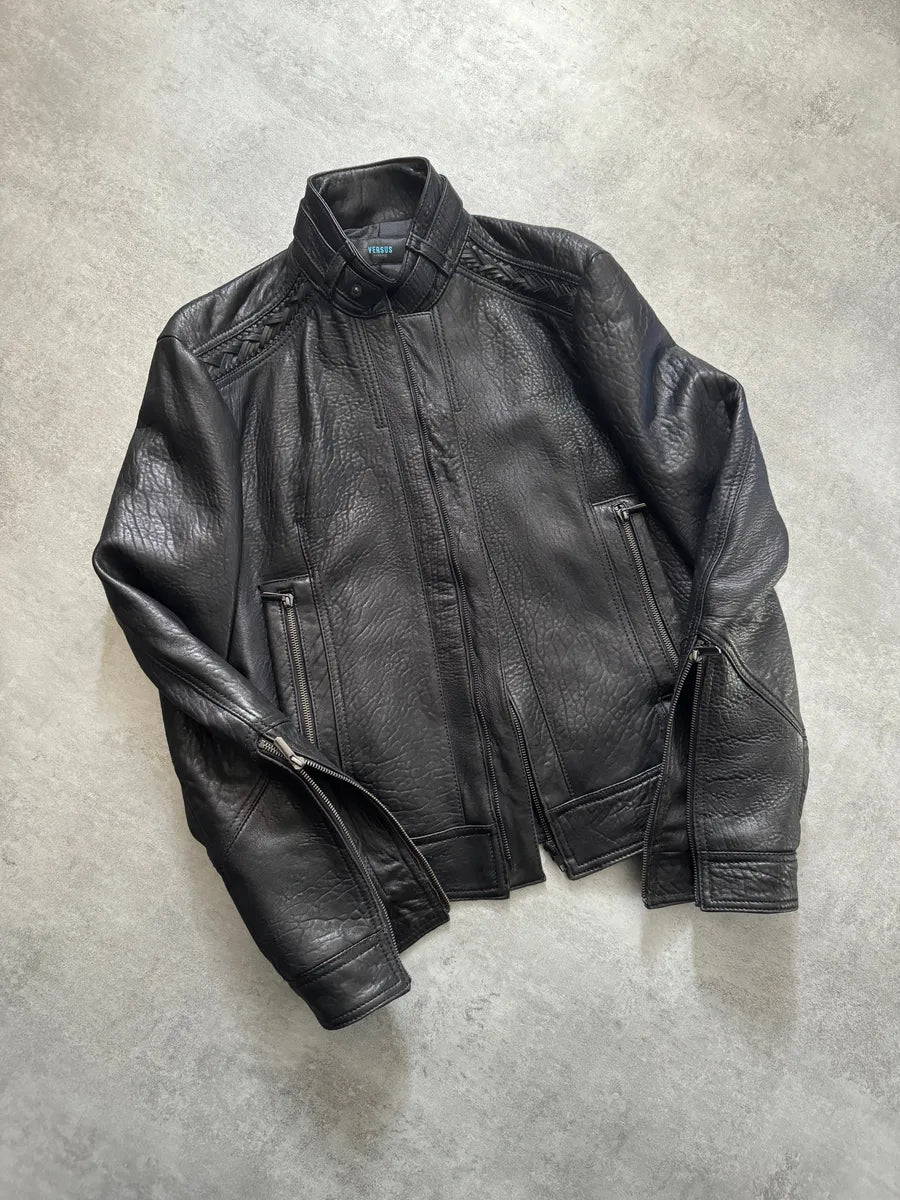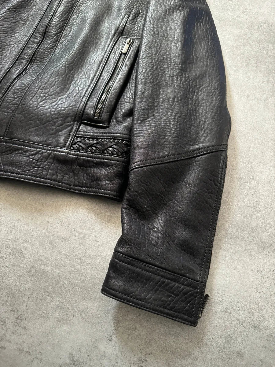 AW2005 Cavalli Multi Zips Black Biker Bomber Jacket -