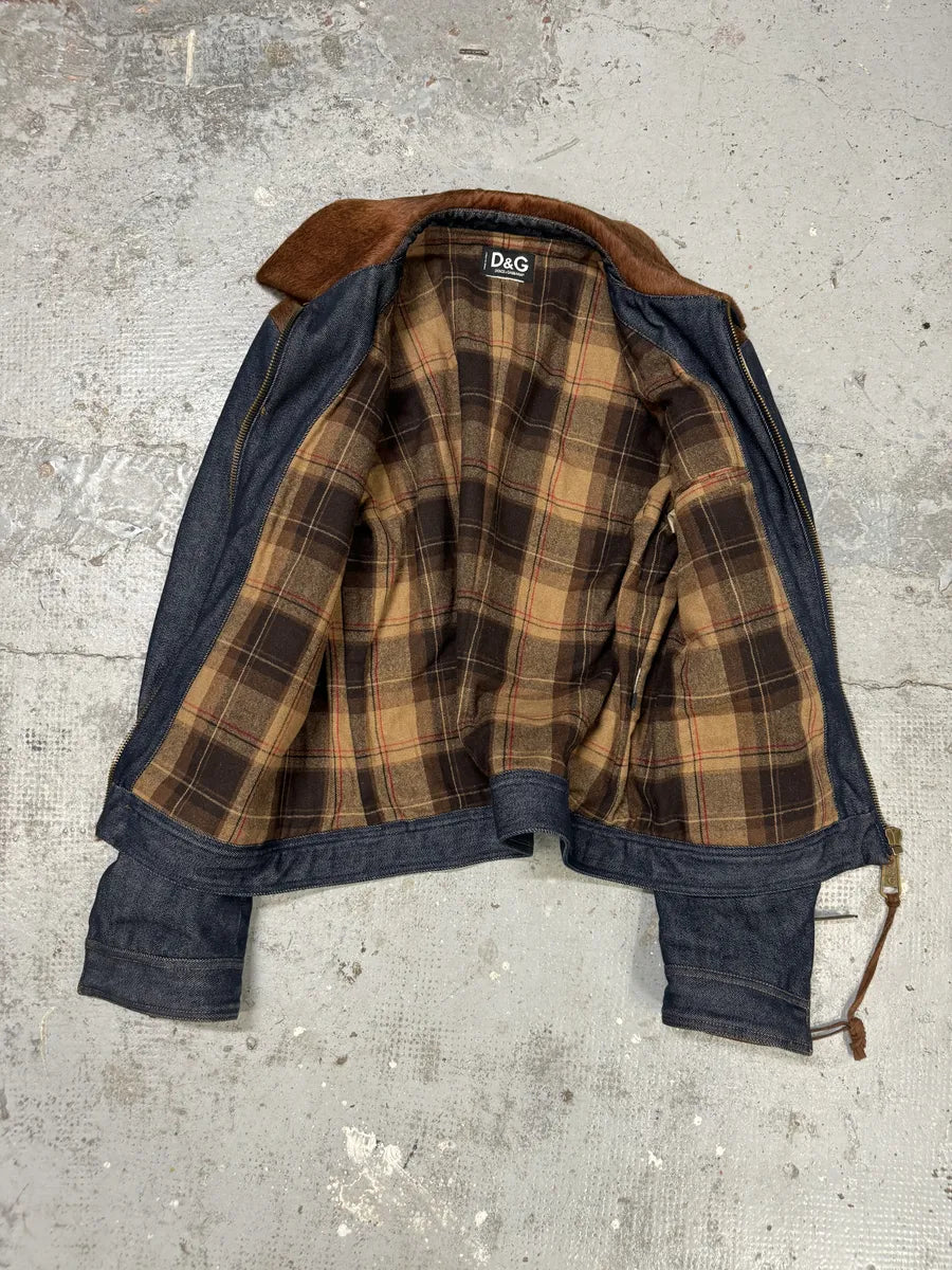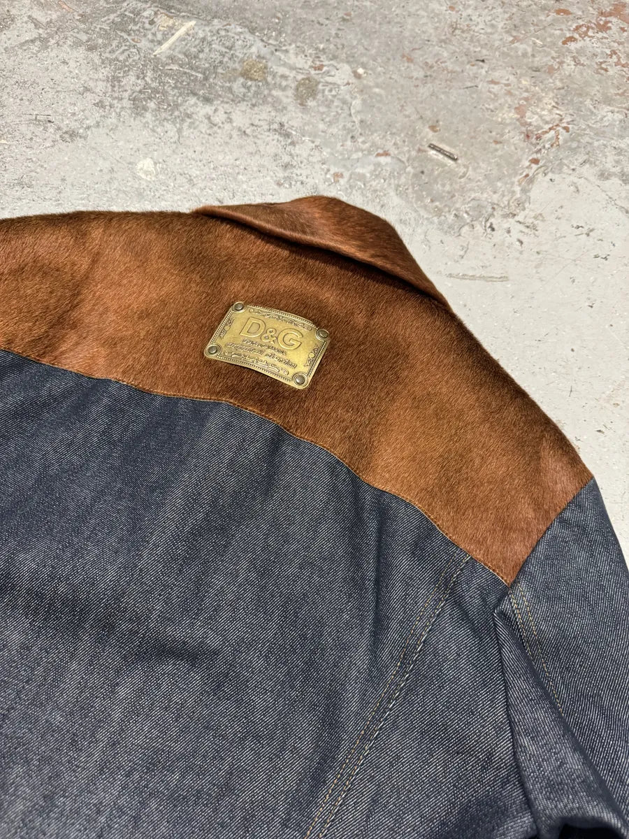 FW2005 Dolce & Gabbana Brown Pony Hair Blue Denim Jacket -