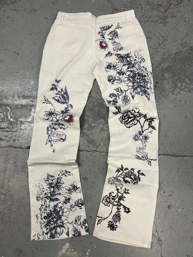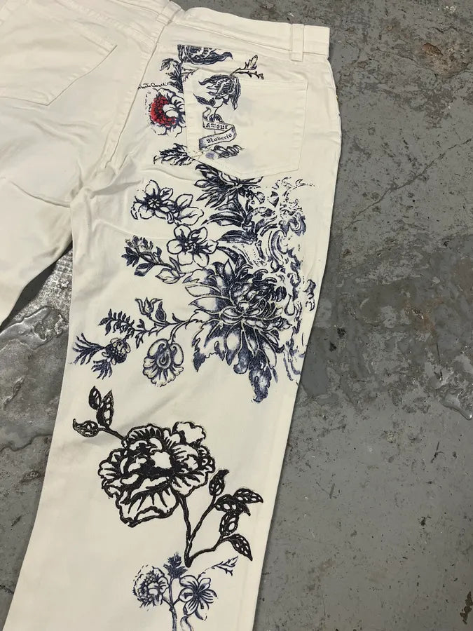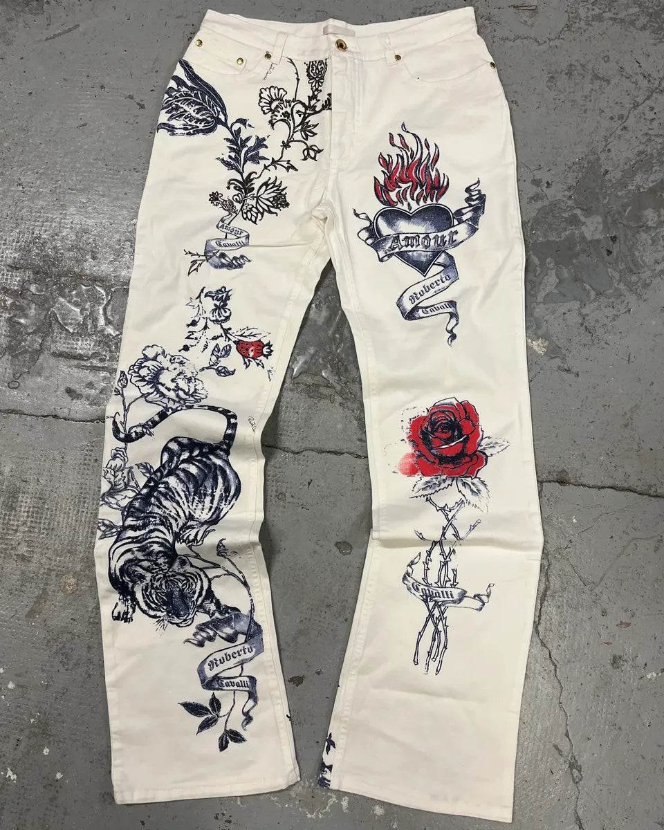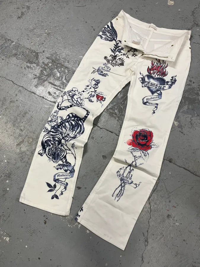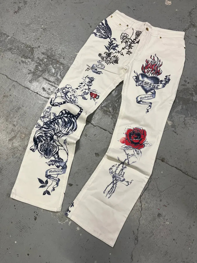 2010s Roberto Cavalli Leaves Tribal White Pants -