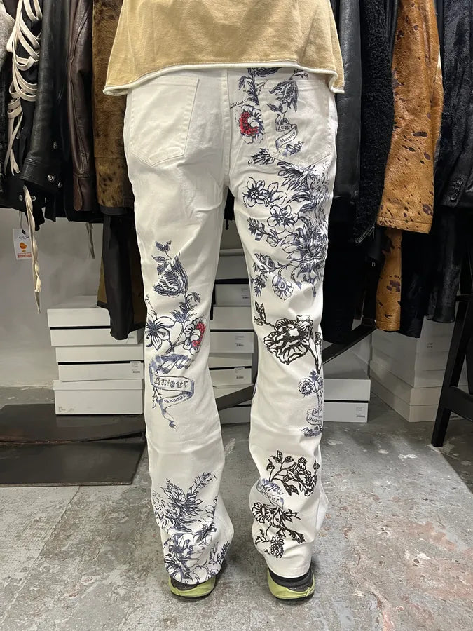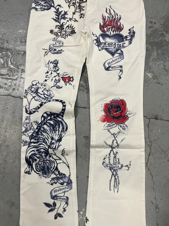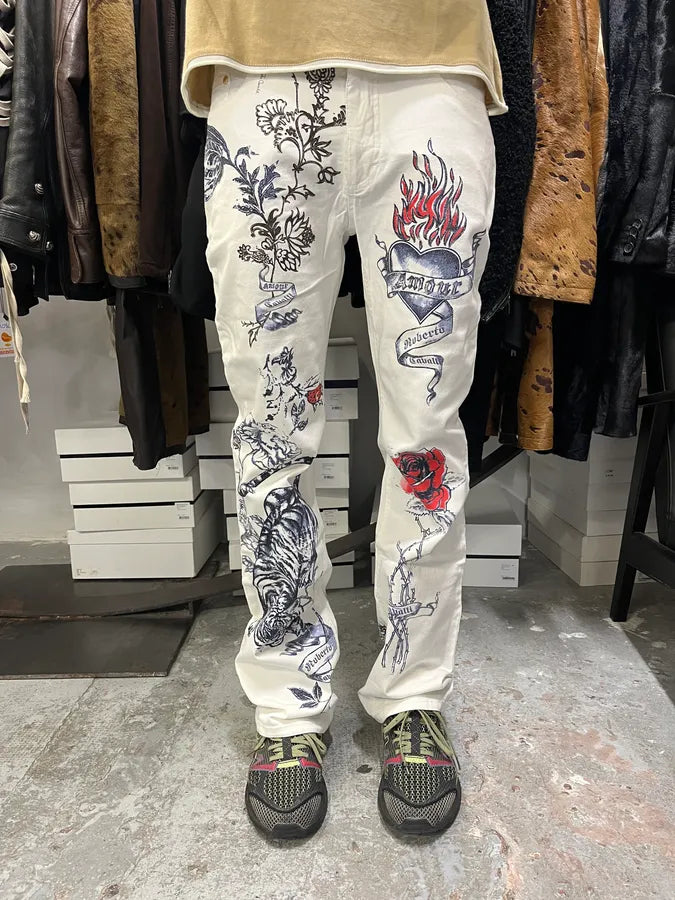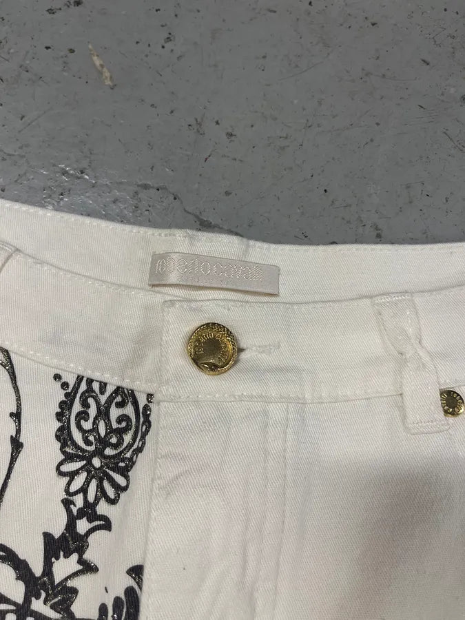 2000s Roberto Cavalli Cowboy Embellished White Pants -
