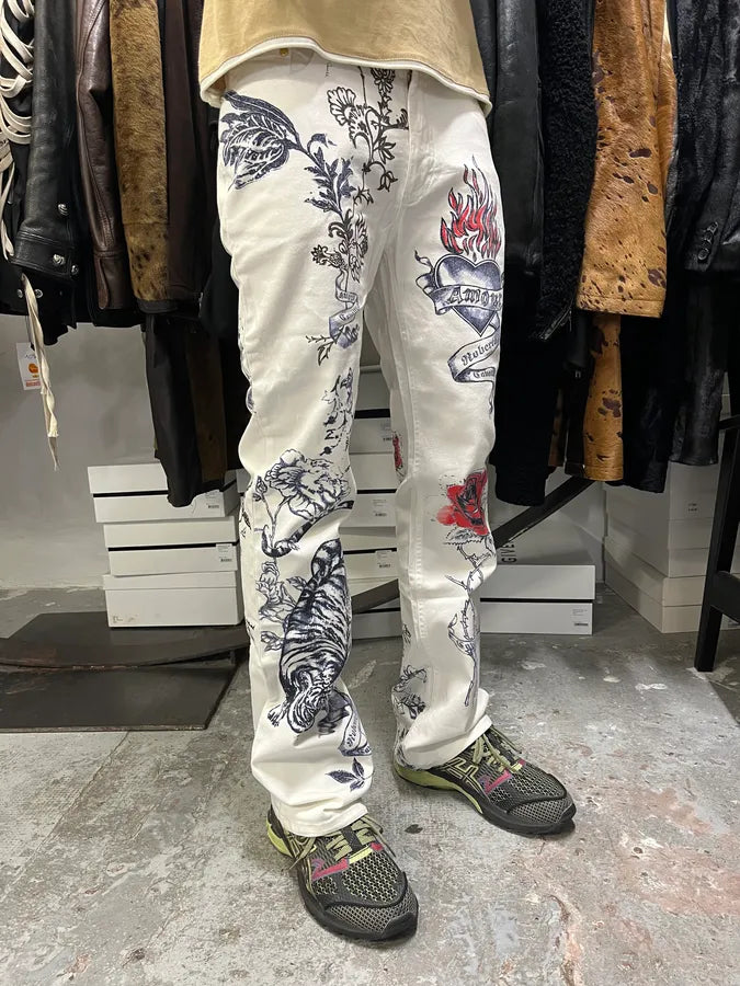 Discover a refined selection of designer pants blending classic tailoring with modern edge. From sleek trousers to relaxed fits, explore pieces by iconic brands like Roberto Cavalli, Prada, Dior, Gucci, Rick Owens, Margiela, Dolce & Gabbana, and Chrome Hearts. Each pair is crafted with premium materials and unique details, perfect for elevating both formal and casual looks.